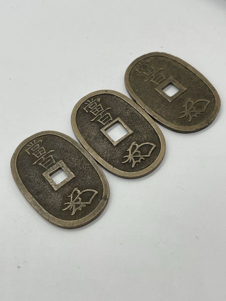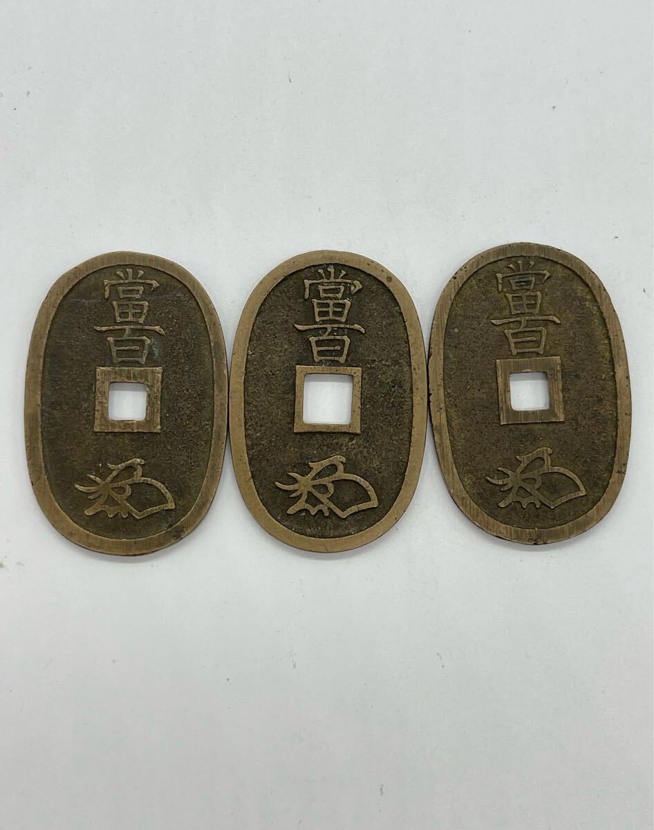 Each coin features the “当百” (Thyaku) inscription and the distinctive oval shape typical of Edo-period coinage.