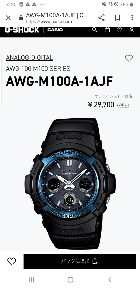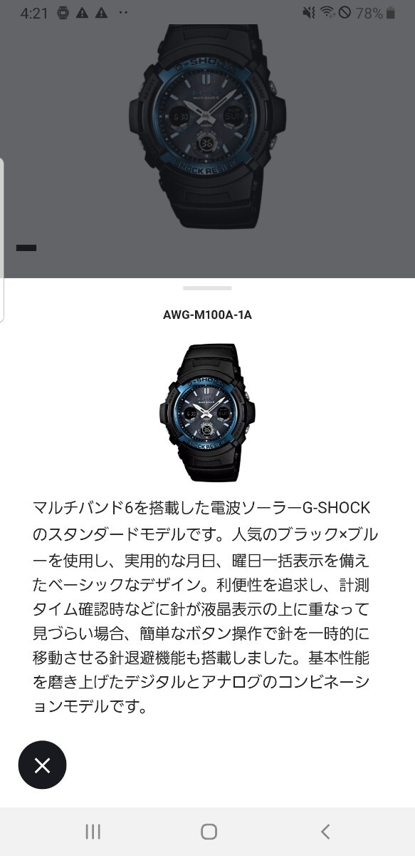 G-SHOCK AWG-M100A-1AJF 稼働良品 メタルベルトに交換済です。
