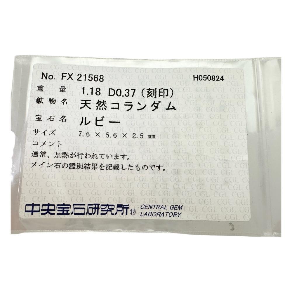 ★石 | ルビー:1.18ct ダイヤモンド:0.37ct |