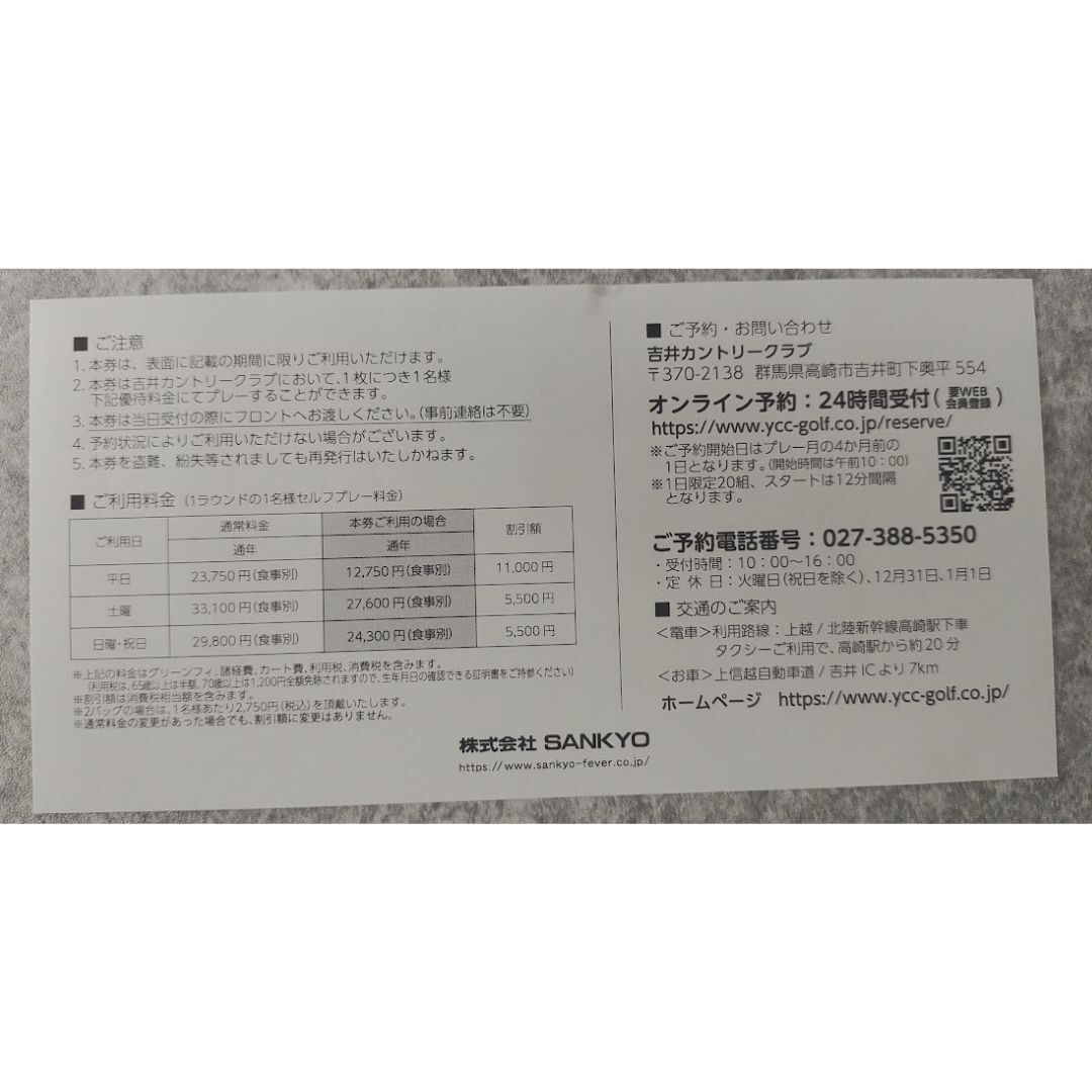 SANKYO株主優待券 吉井カントリークラブプレーフィー割引券2枚