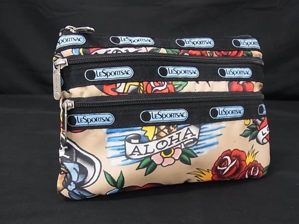LeSportsac レスポートサック ナイロン 総柄 ポーチ マルチケース 小物入れ レディース ベージュ系×マルチカラー DH9002