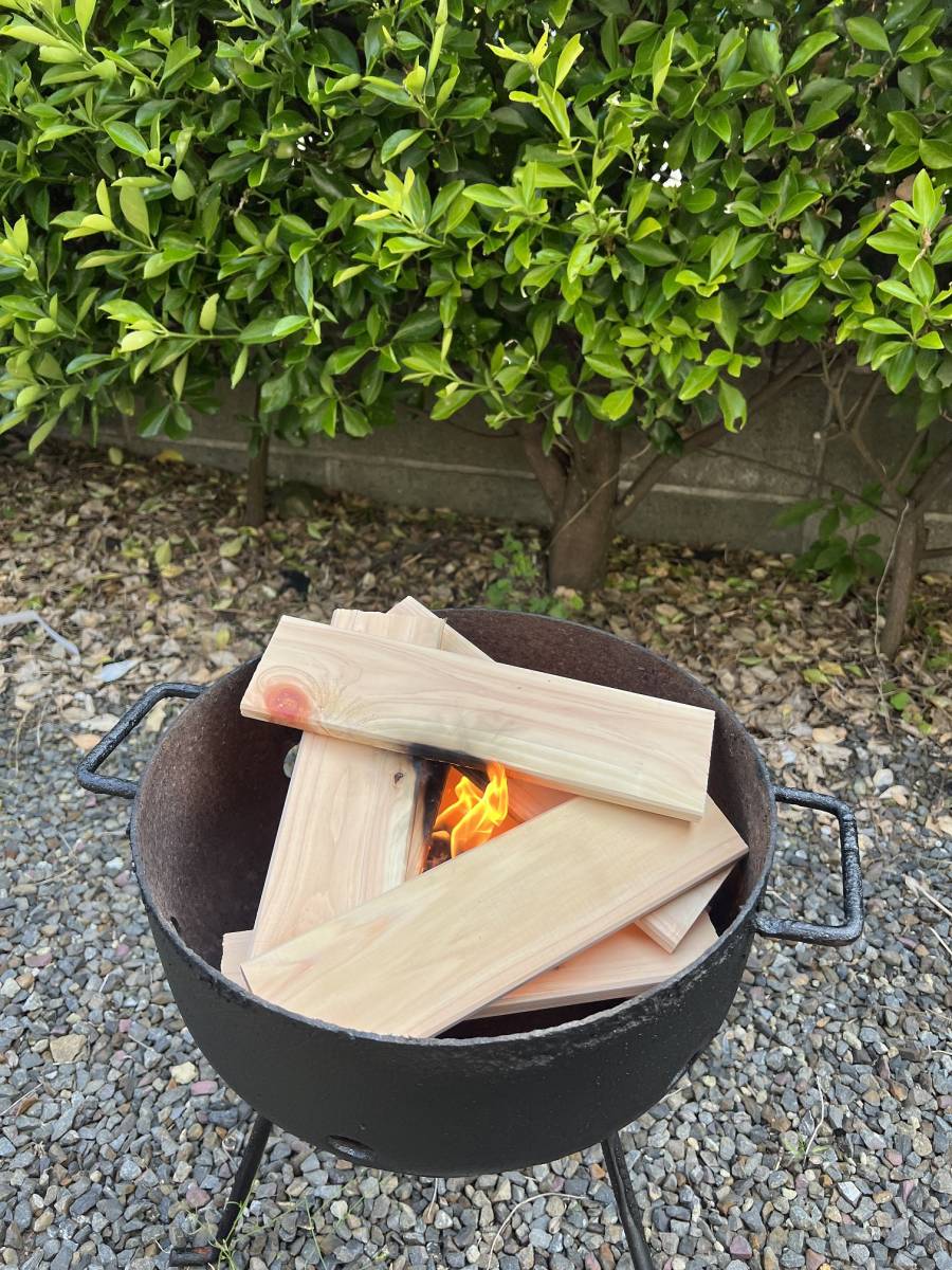 ・国産ひのきの乾燥薪です。着火性がよく、よく燃えます。
