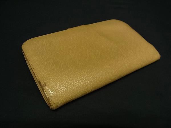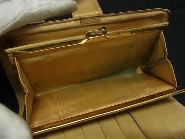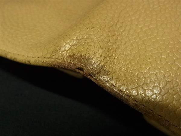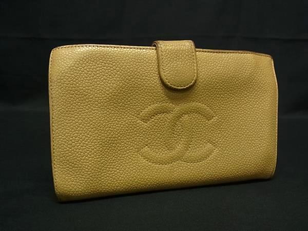 1円 CHANEL シャネル ココマーク キャビアスキン がま口 二つ折り 長財布 ウォレット 札入れ 小銭入れ レディース ベージュ系 FV1758