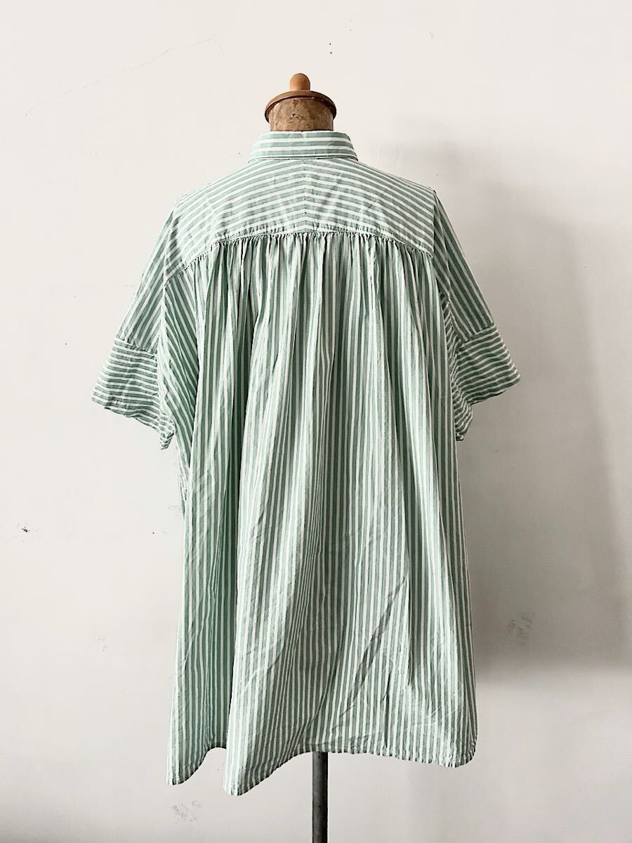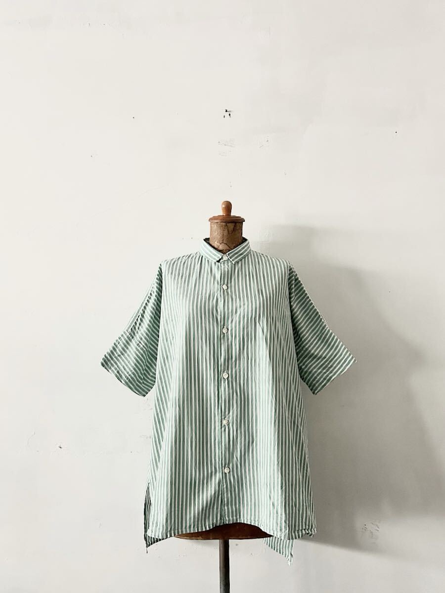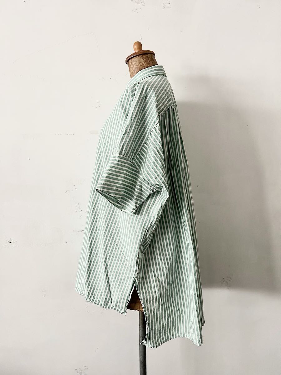 カラーは白×ライトグリーンでコットン素材のワイドシャツです。