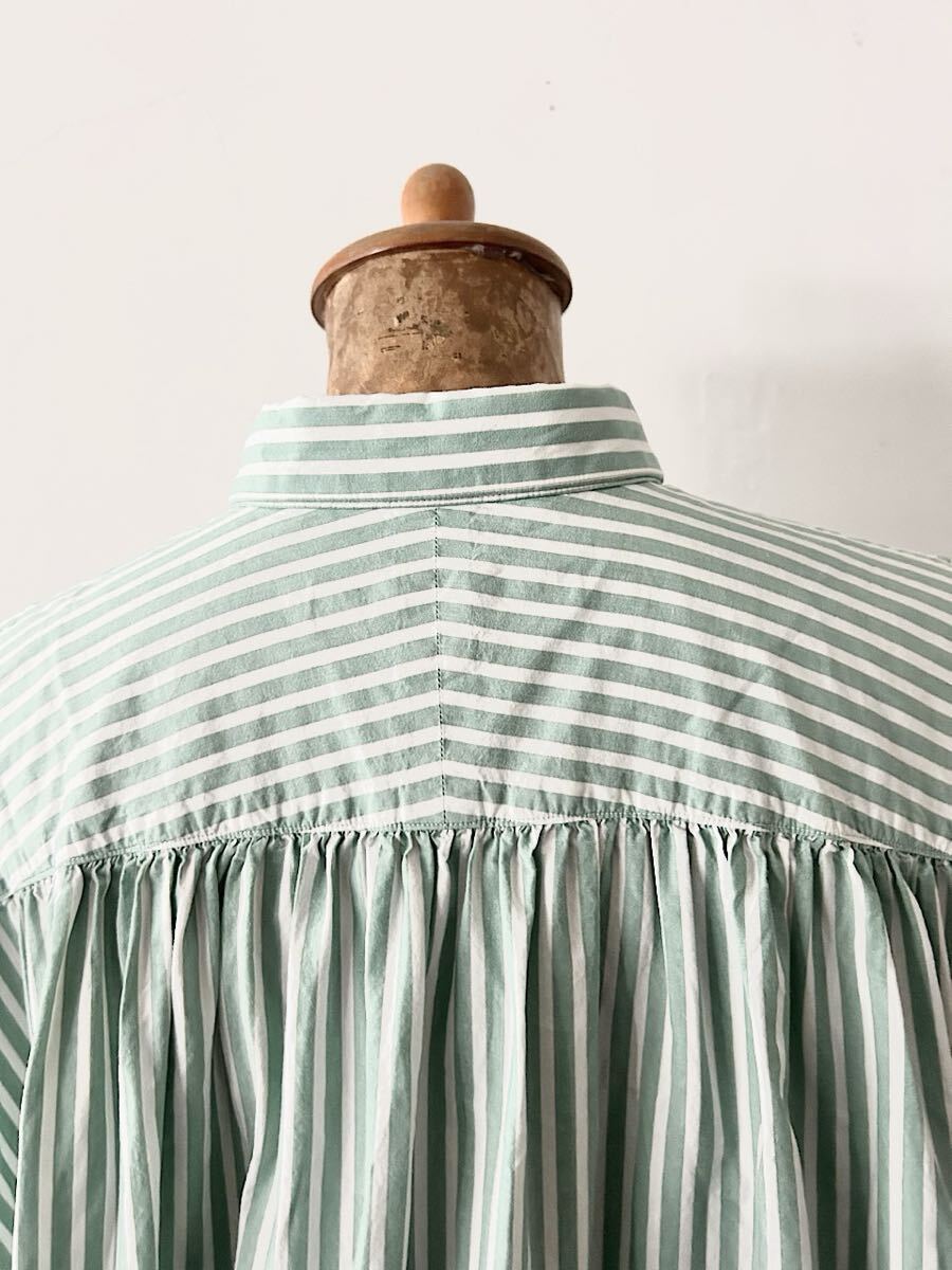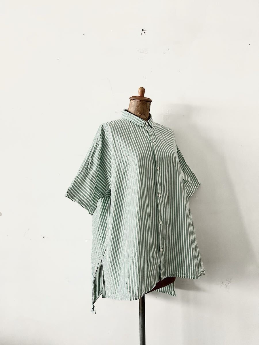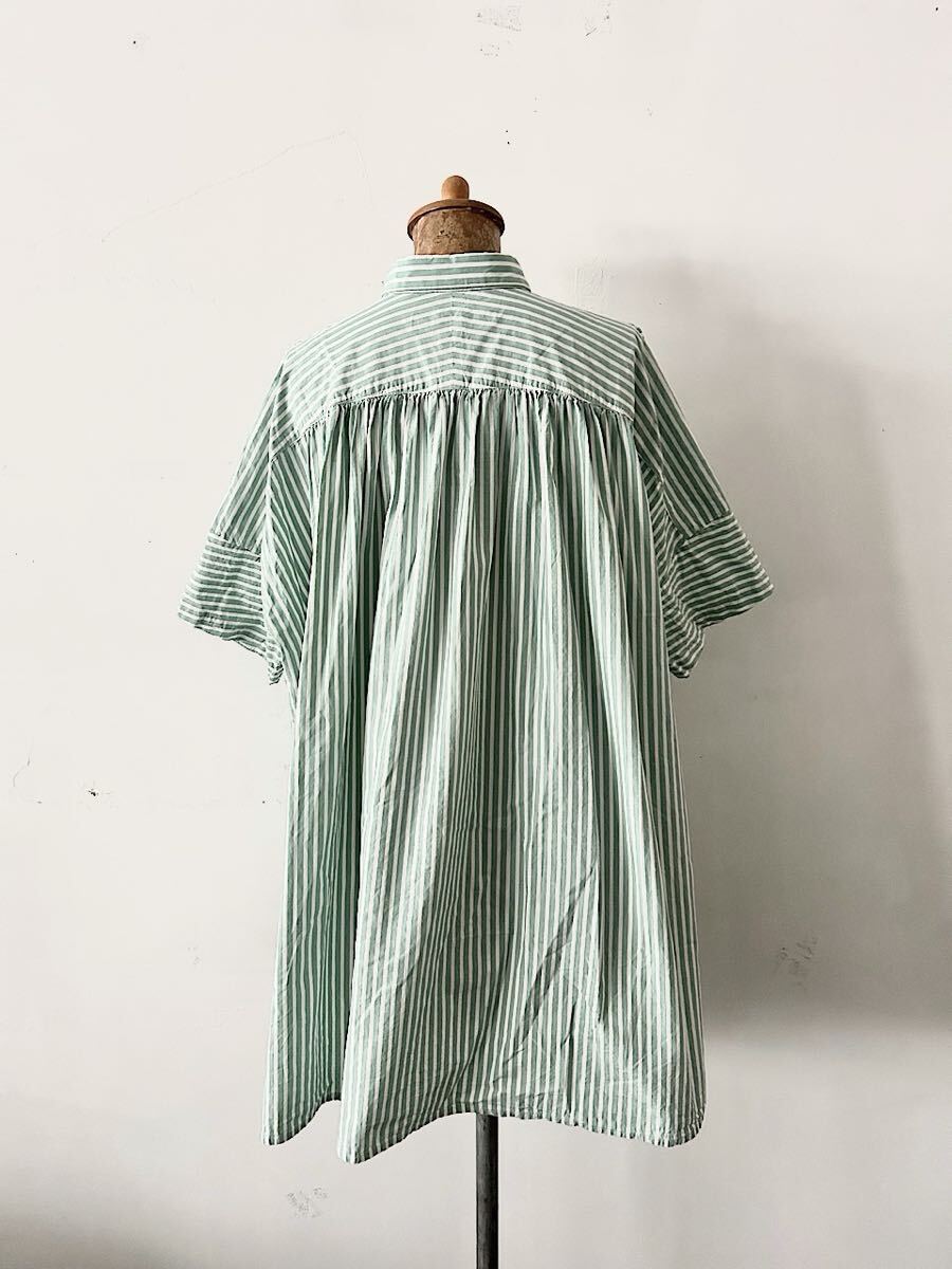 カラーは白×ライトグリーンでコットン素材のワイドシャツです。