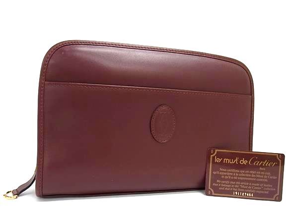 1円 ■美品■ Cartier カルティエ マストライン レザー クラッチバッグ セカンドバッグ レディース ボルドー系 FV0558