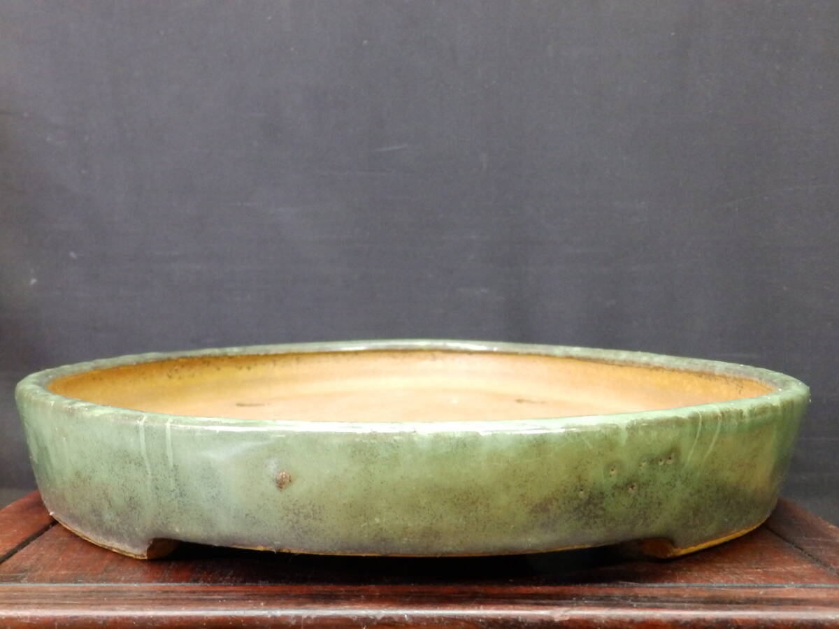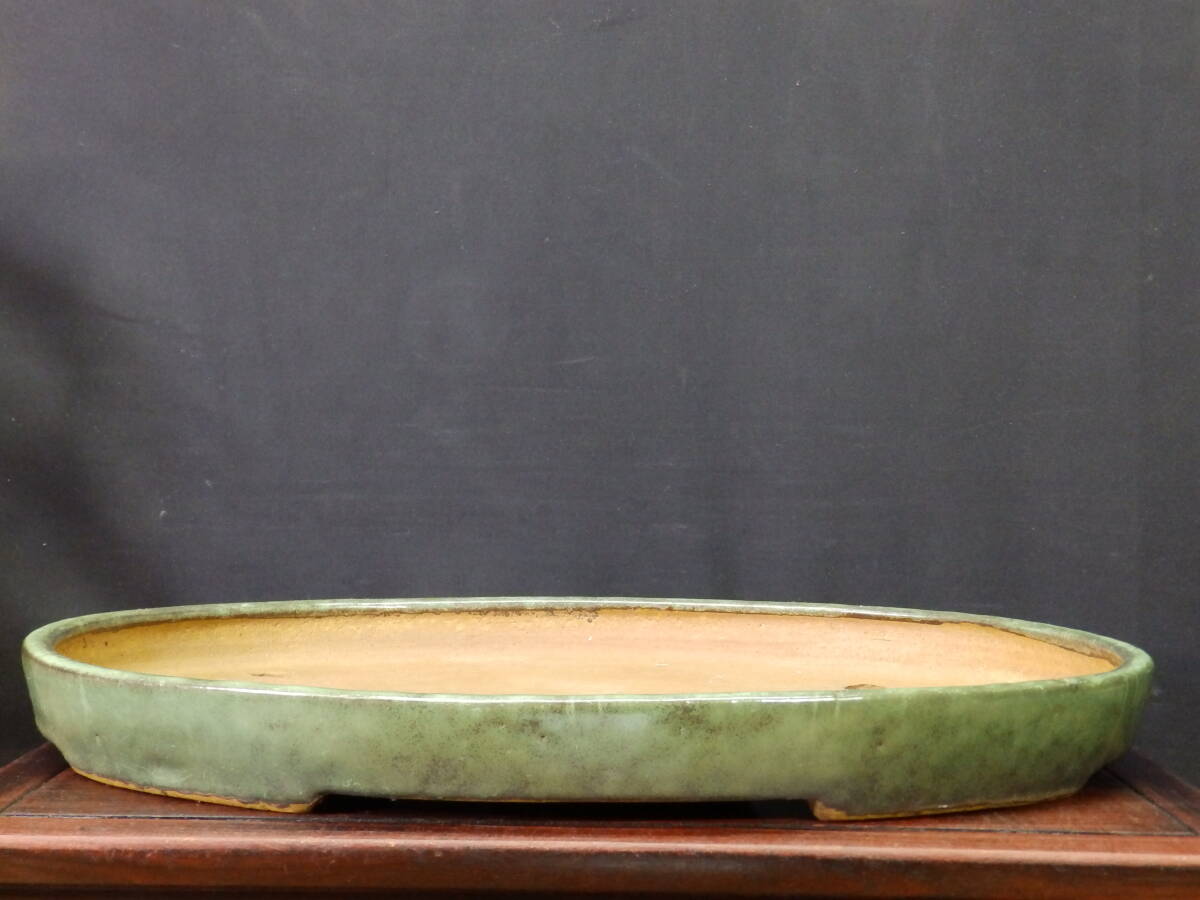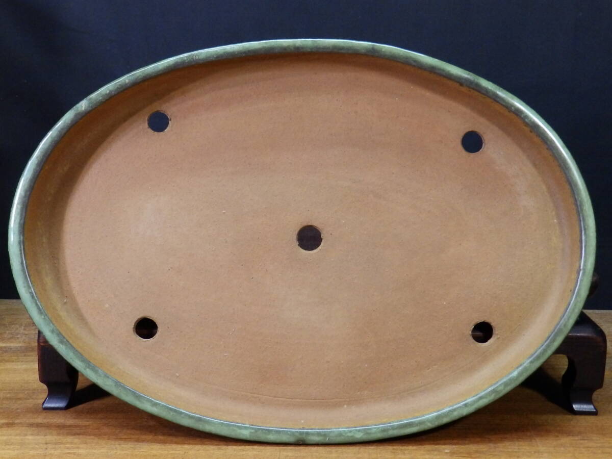 ★盆栽日和★ 和鉢 【義村秀峰】 緑釉切立楕円鉢 46.5㎝ (h)