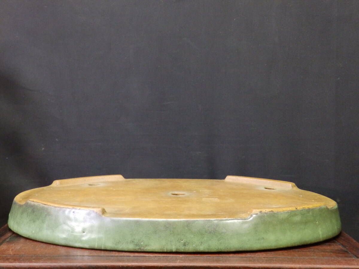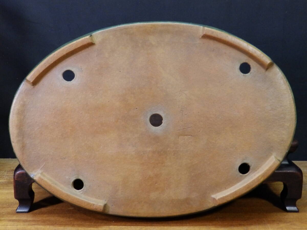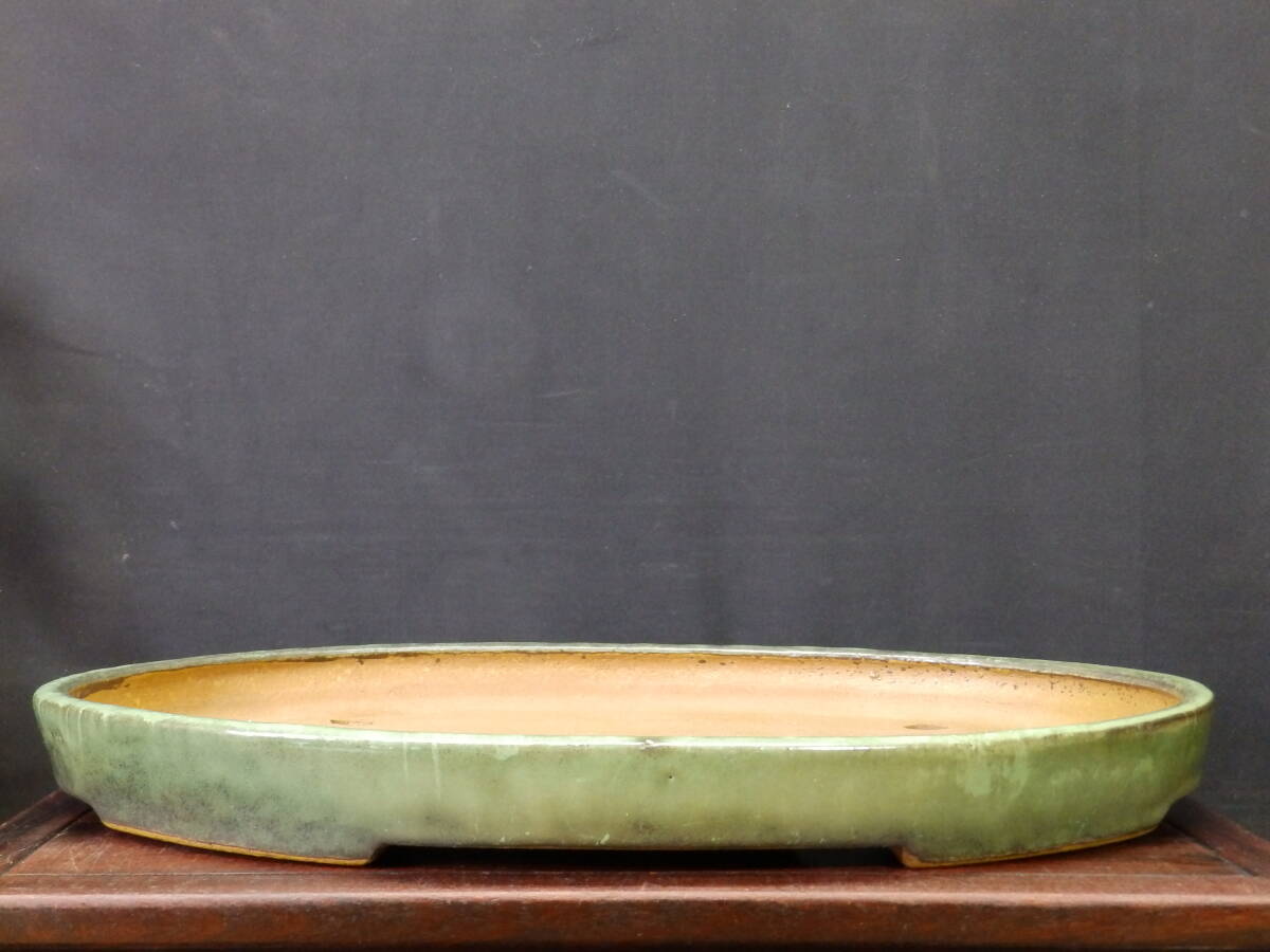 ★盆栽日和★ 和鉢 【義村秀峰】 緑釉切立楕円鉢 46.5㎝ (h)