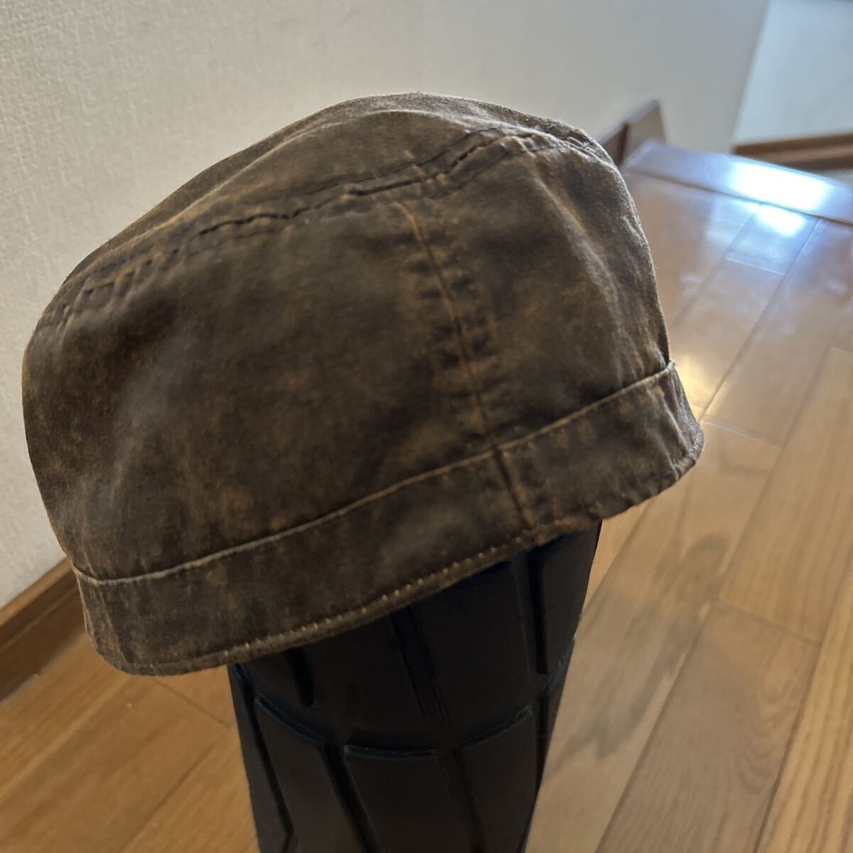 ご覧の通りのお品です。1か月ほどボチボチ使用して倉庫保管です。市販は少なかったお品と思います。なかなかカッコいいです。経年変化や小さな傷み、汚れなどは個人差がございます。写真でご確認の上、ノークレームノーリターンで細かいところ気にされる方は入札ご遠慮ください。帽子高さ写真の状態で9センチ素人採寸です。若干の使用感ございます。皮革に見えますが、被りやすく、渋いです。