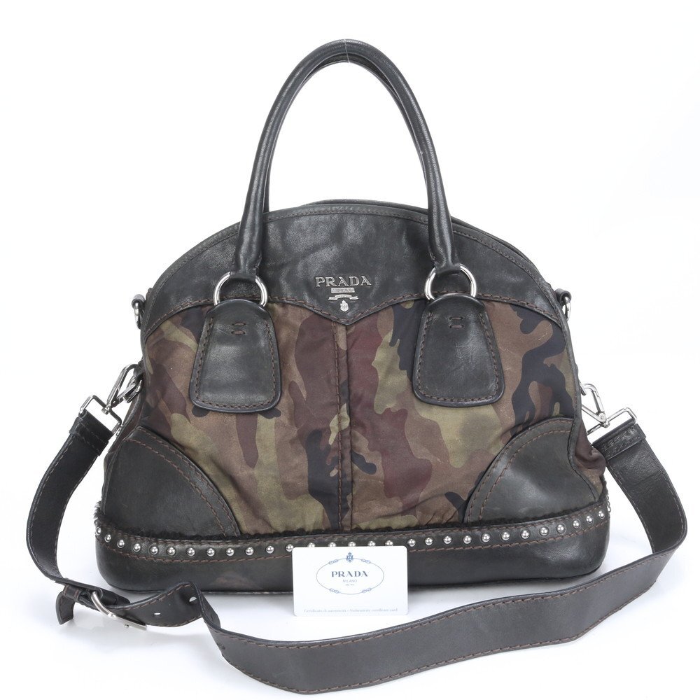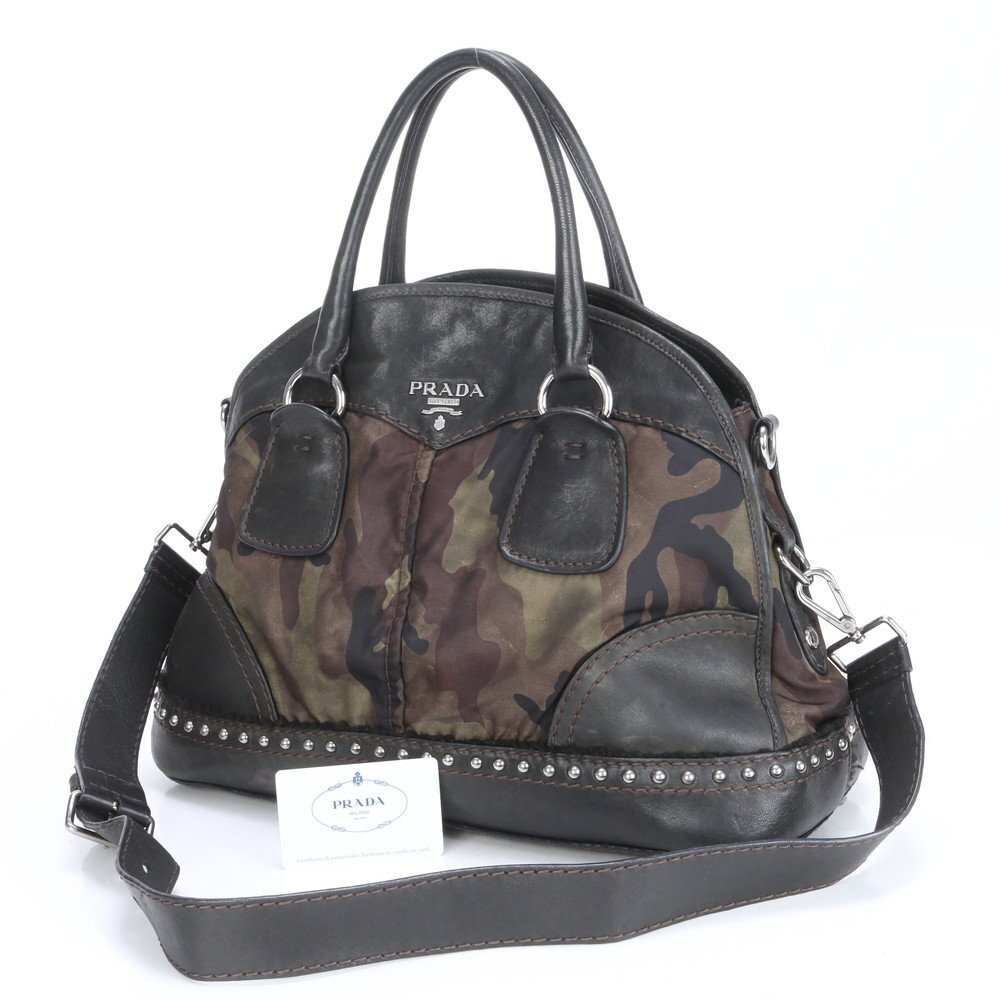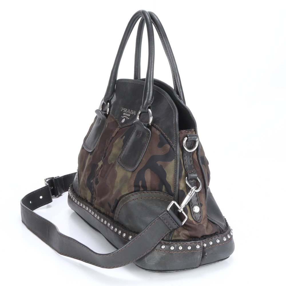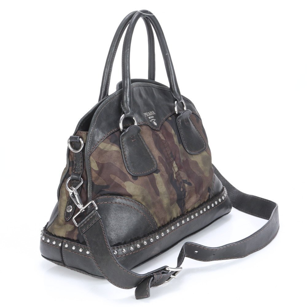 1円 ギャランティ付 プラダ カモフラージュ 迷彩 スタッズ レザー 2WAY ショルダーバッグ 斜め掛け トート A4 レディース MMM CA18-1