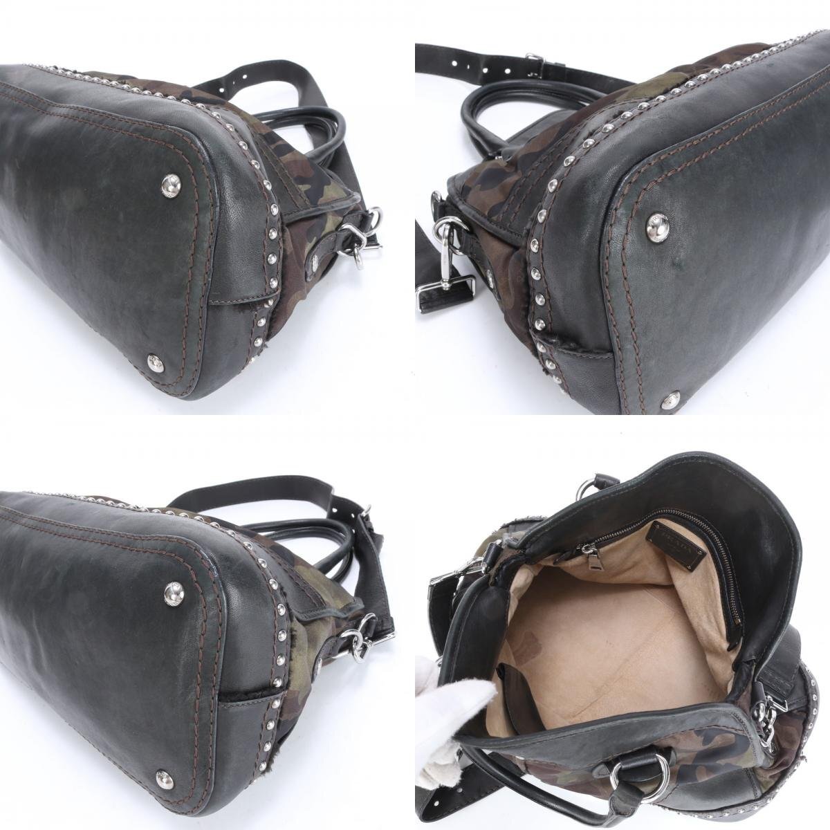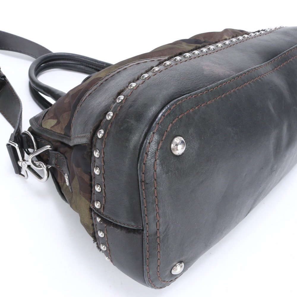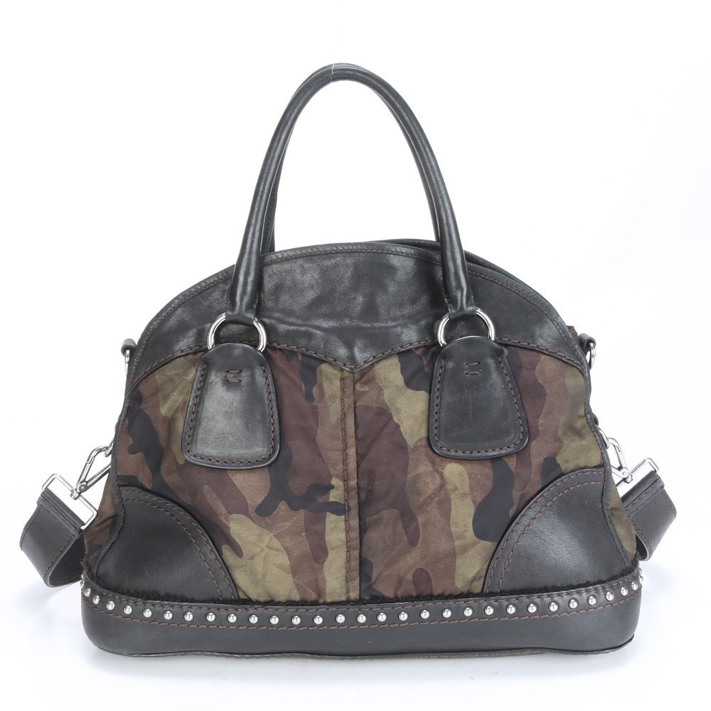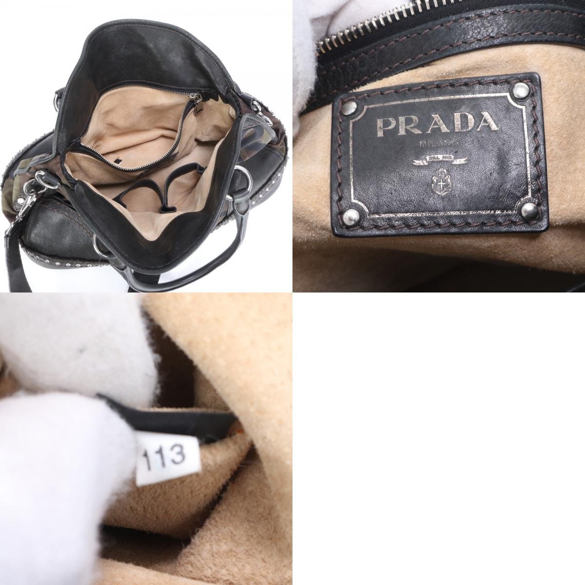 1円 ギャランティ付 プラダ カモフラージュ 迷彩 スタッズ レザー 2WAY ショルダーバッグ 斜め掛け トート A4 レディース MMM CA18-1