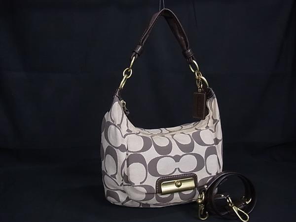 1円 COACH コーチ 16817 シグネチャー キャンバス×レザー 2WAY ハンドバッグ ショルダーバッグ ベージュ系×ブラウン系 FP7408