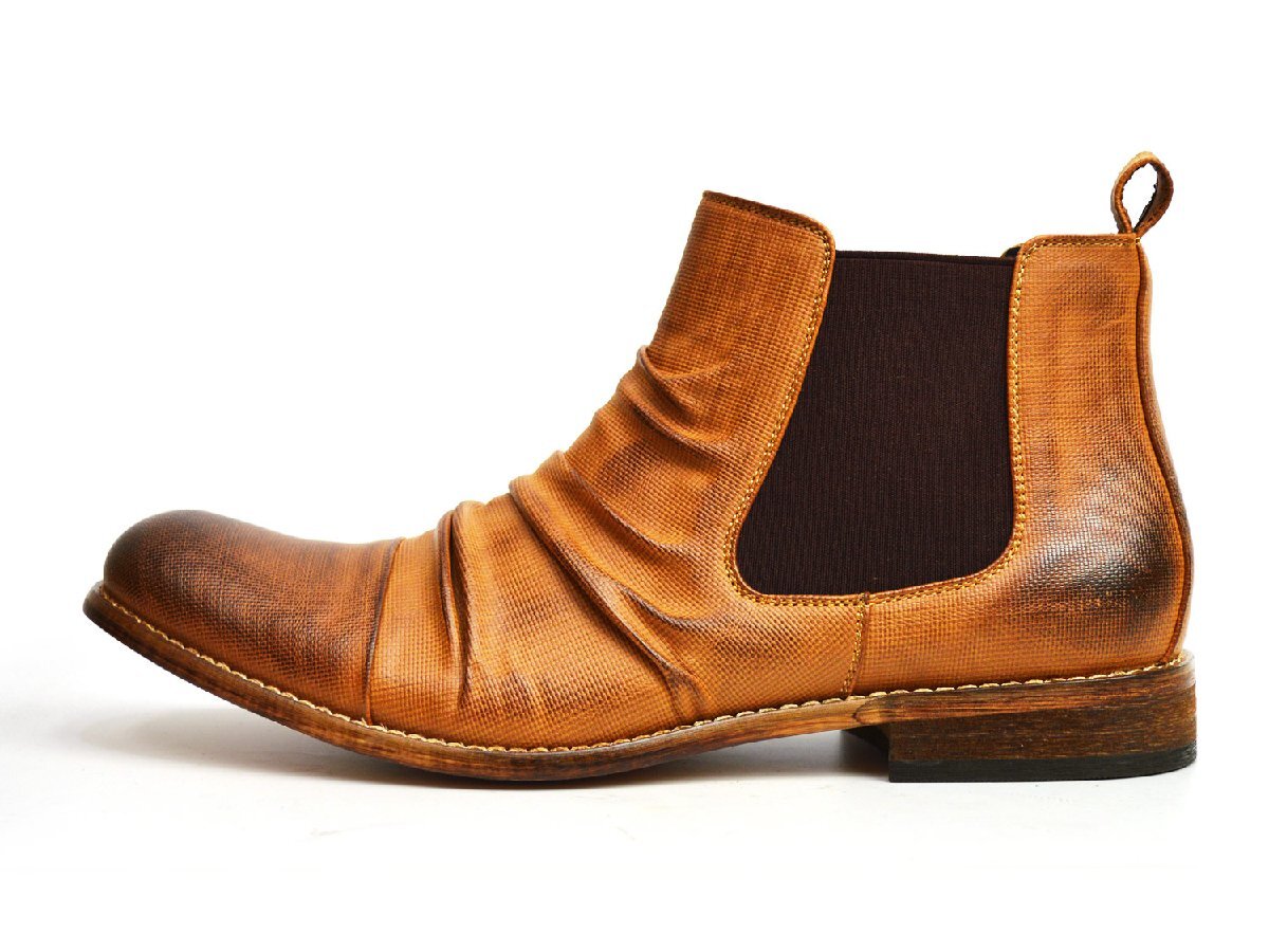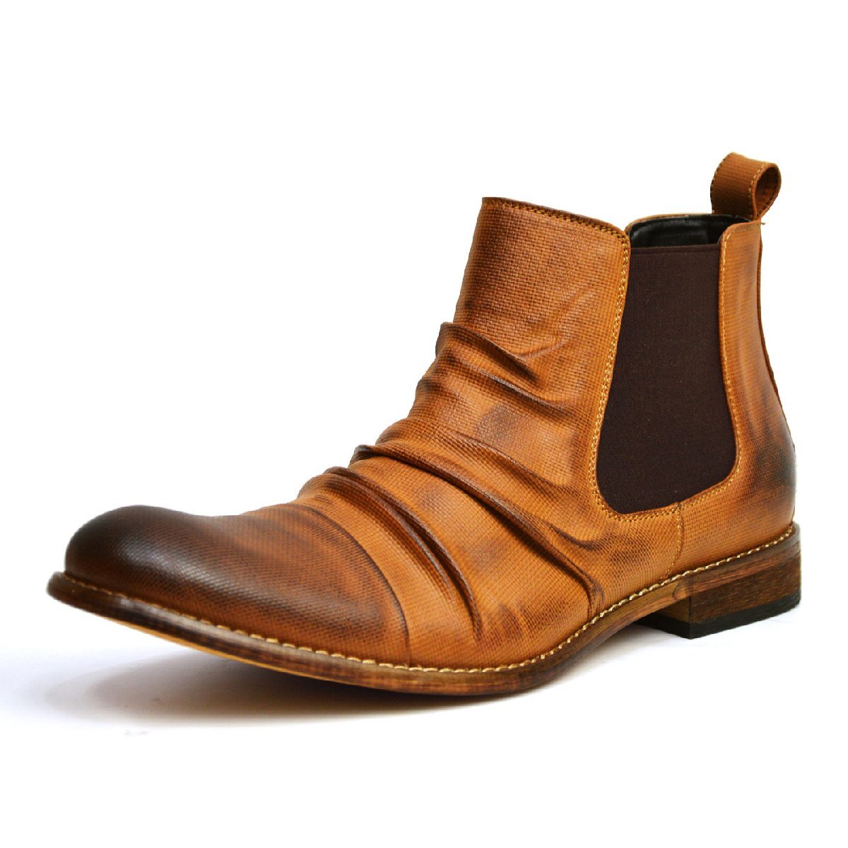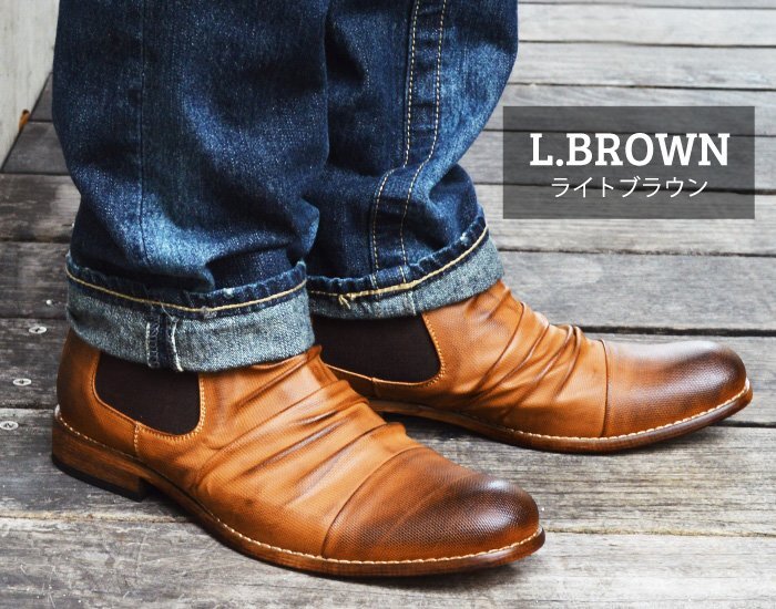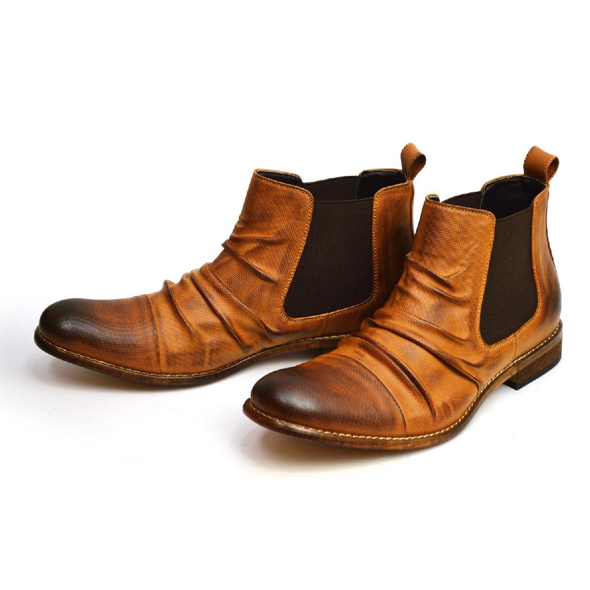 ブーツ MEN's サイドゴア パンチング 革 フォーマル ドレープ キレイめ 靴 アンティーク ze2888