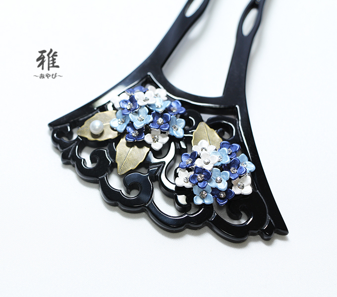 【 雅 】 四季の移ろい。o○”紫陽花”大振り透かし扇 かんざしB