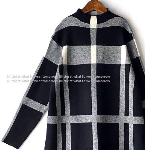 新品【送料185円】伸縮◎トラッドチェック柄*もっちりハイゲージニット*通勤オフィス対応◎プルオーバー*チュニック*ワンピース7704.BLACK