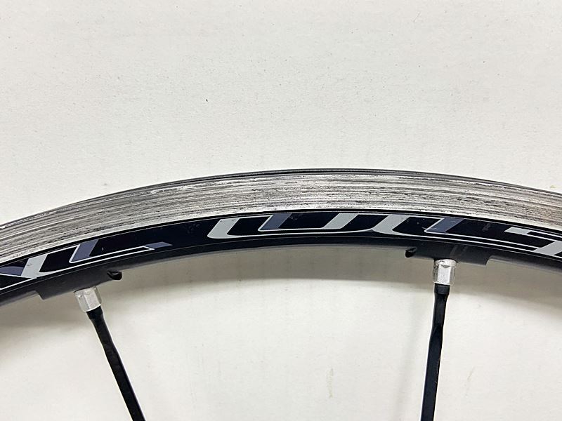 リムのブレーキ面は、前後共に、強い使用感が感じられます。