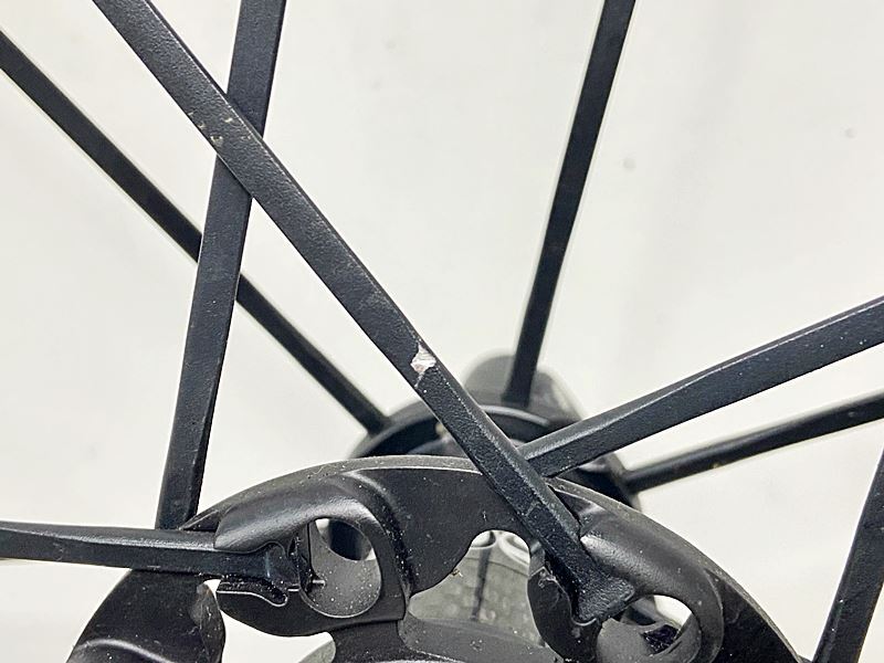 全体的に傷、スレ、汚れがあり、リアのスポークに削れ傷が見られます。