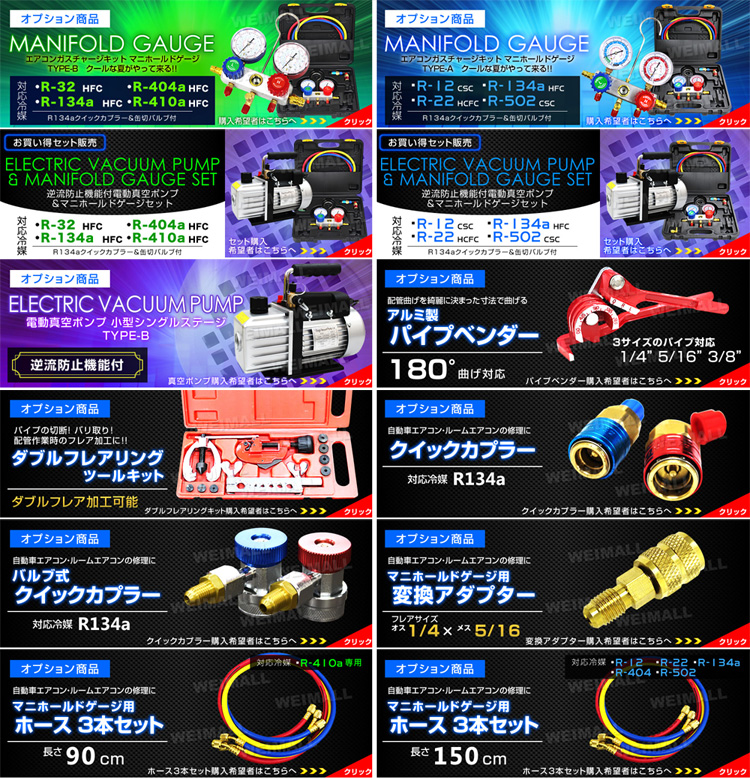 | 低圧/高圧クイックカプラー !! 対応冷媒R134a 用です。 |