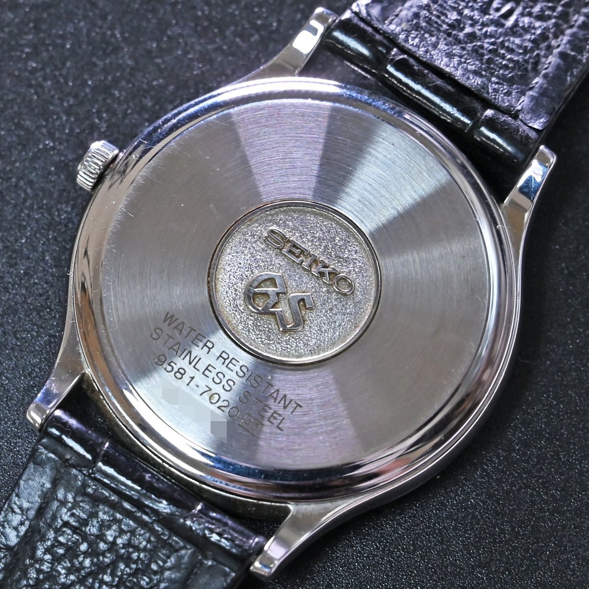 セイコーのグランドセイコー GS クオーツ SBGS009です。 「精度を極めた孤高のクォーツ」 1980年代、日本が世界に誇る精度革命の象徴、グランドセイコー 9581-7020。 文字盤に輝く「GSマーク」は、当時のグランドセイコーが 最高精度クォーツ として位置付けられていた証。 ケースはエッジの効いたセイコースタイルを体現しつつ、シンプルで無駄のないデザイン。 深みのあるシルバーダイアルに凛としたバーインデックスが並び、腕元に知性と気品を漂わせる。 搭載する Cal.9581 は、年差わずか±10秒を誇るハイエンドクォーツ。 機械式を凌駕する精度を実現したこのムーブメントは、セイコーの技術力を世界に知らしめた歴史的存在だ。 この 9581-7020 は、単なる実用時計ではない。 「世界最高の精度を実現した時代の証人」 であり、グランドセイコーの矜持を宿した一本である。 市場でも圧倒的な人気を誇るモデルなのでお探しの方も非常に多いかと思います。 ※基本動作確認済。 |