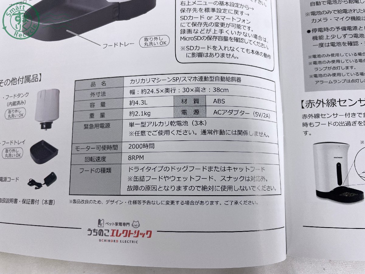 △うちのこエレクトリック カリカリマシーンSP PF-103 スマートペットフィーダー ペット用品 自動給餌器 通電確認済 中古 | |||