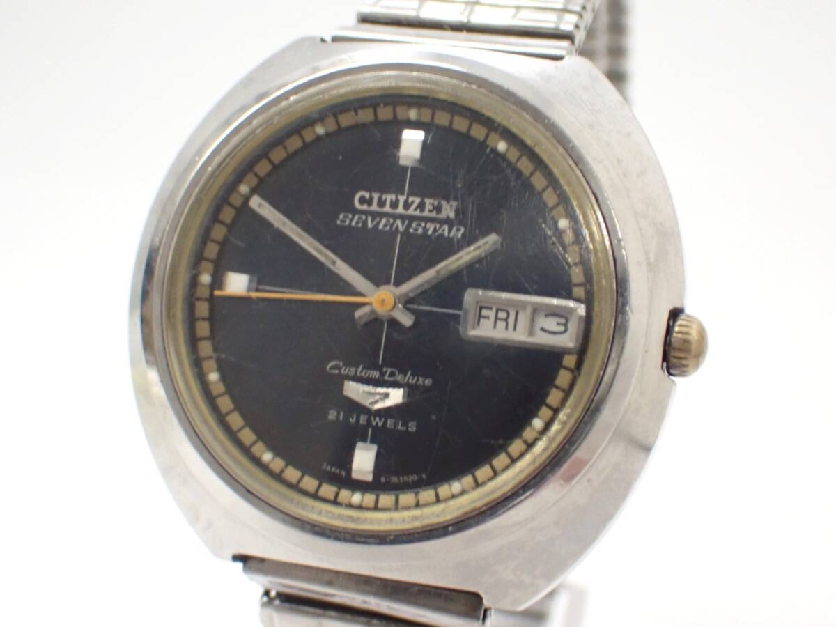 ★★★★★★★注意事項 必読★★★★★★★★★★★★ ●原価を大きく下回る場合取り消しする場合がございます。 ●削除された場合、悪い評価をいれずご理解頂ける方のみ 当方のオークションへご参加ください。 ★★★★★★★★★★★★★★★★★★★★★★★★★ ●ご理解いただけない方の入札を固くお断りいたします。 ★★★★★★★★★★★★★★★★★★★★★★★★★ ・落札後48時間以内にお支払いまでの手続きが可能な方 ・受け取り後、迅速にお受け取り通知可能な方 ・取引実績が10回以上の方、且つ悪い評価が5%以内の方 ※48時間以内にお支払いいただけない方、2回未満の取引の方は取り消しさせて頂きます。 ・中古品現状販売となる為、神経質な方はご遠慮ください。 ■商品の返品について ・お受け取り連絡後、もしくは受け取り期限超過をしての返品は受付出来かねます。 ・画像確認漏れ、商品説明確認不足による返品は一切受け付けておりません。 ・必ず画像、説明文をよくご確認の上ご入札ください。 ■発送方法について 指定方法以外の発送は対応しておりません。 原則、お支払い完了後、4日以内に発送させて頂きます。 商品管理上、原則同梱包は出来かねます。 稼働商品については、必ず発送前に動作確認を実施しております。 万が一、輸送中に電池切れを起こした場合においては、落札者様の御負担にて、電池交換をお願いいたします。 発送方法は下記の通りとなります。 低単価商品を落札後送料が高いと言ってる方がいらっしゃいますが 下記表にて定額料金を事前にご確認くださいませ。 ■佐川急便配送エリア 北海道/青森県 秋田県 岩手県/宮城県 山形県 福島県 https://www.sagawa-exp.co.jp/send/fare/faretable01.html ■ヤマト運輸配送エリア 上記以外のエリア https://www.kuronekoyamato.co.jp/ytc/search/estimate/hokkaido.html ■領収書の発行について 領収書の発行はいたしておりません。 ■入札取り消しについて 終了時刻6時間を切った場合、入札取り消し依頼のご対応を出来かねます。 よくご確認の上、入札下さいませ。 気持ちの良いスムーズなお取引を心がけております。 ご縁があった際は宜しくお願い申し上げます。 ----------------------------------------------------- 【商品詳細】 CITIZEN シチズン AT/自動巻き メンズ腕時計 SEVEN STAR セブンスター Custom Deluxe 4-521188TA 黒文字盤 デイデイト 【ランク】 B ----------------------------------- ■参考/ランクの程度 N:新品 S:未使用品 A:極美品 AB:美品(使用感小) B:使用感中 C:使用感大 D:ジャンク扱い ------------------------- 【状態】 稼働品 時刻操作:可能 日付操作:可能(曜日24時間) ガラス面小傷あり フェイス周り、裏蓋やや擦れ小傷あり 社外ベルト 【発送サイズ】 北海道発 60サイズ 【付属品】 本体のみ --------------------------------------------------------- ※状態について 主観には個人差がある為 画像にてご判断頂きますようお願いいたします。 ※日差について 半日以上の日差については検査いたしておりません。 現状品としてご理解いただいた上でご入札ください。 | |||