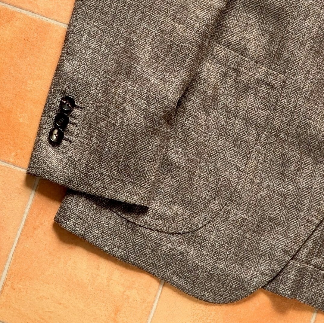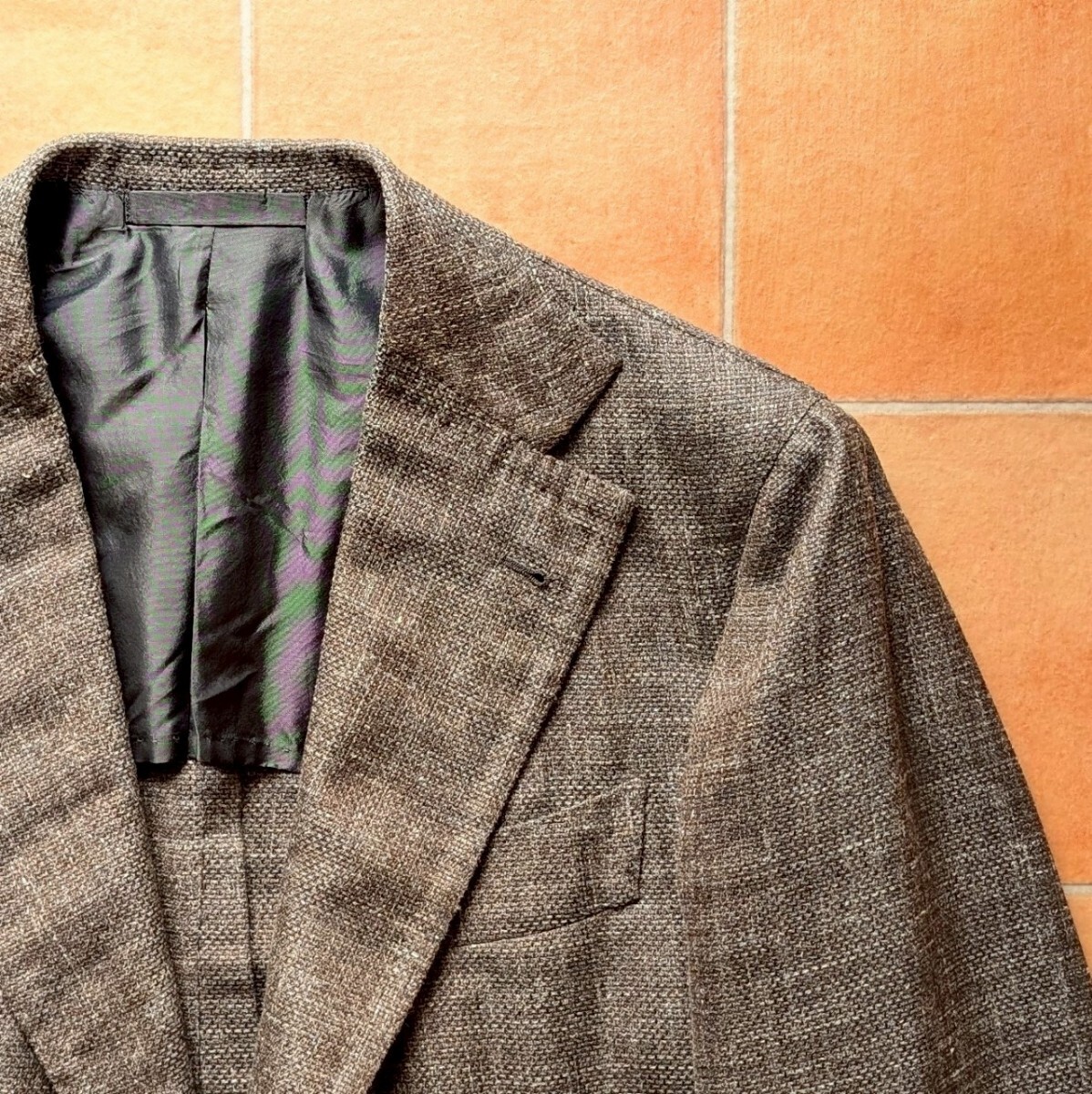 美しいシルクリネン混のジャケット生地を使用した、フルハンドの極上ジャケットです。