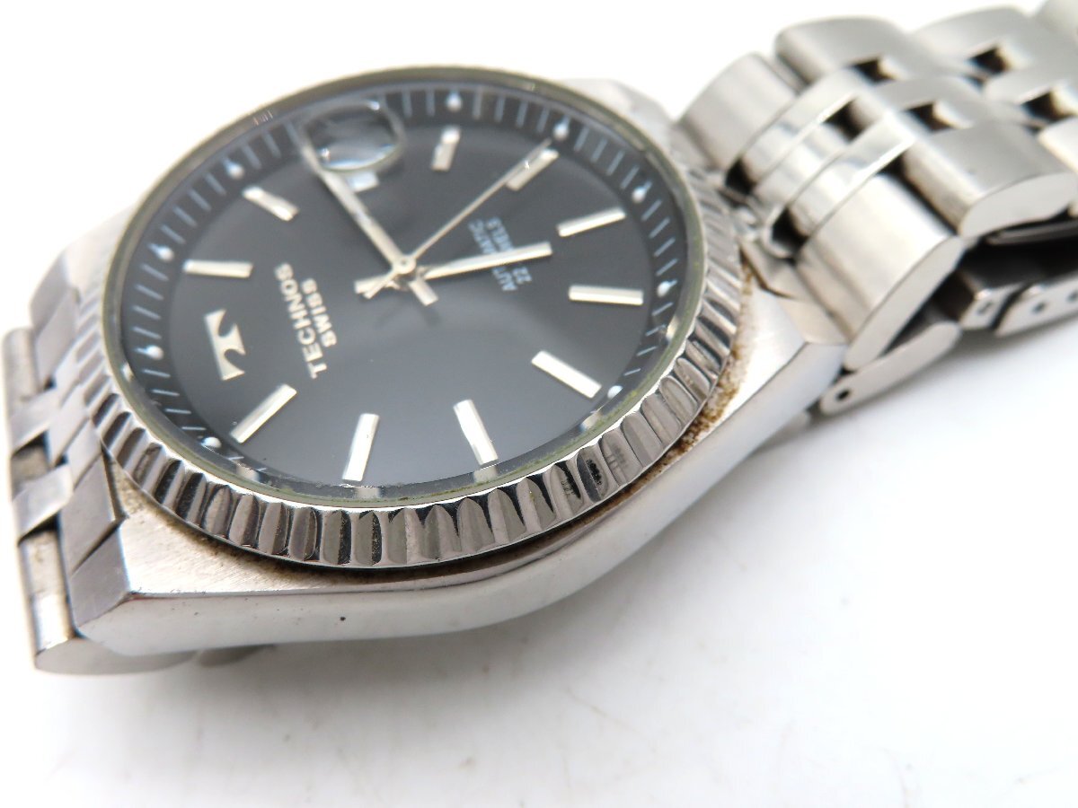 1円 テクノス TBM610 SS ブラック文字盤 メンズ 稼働 AT 2614601 NRK