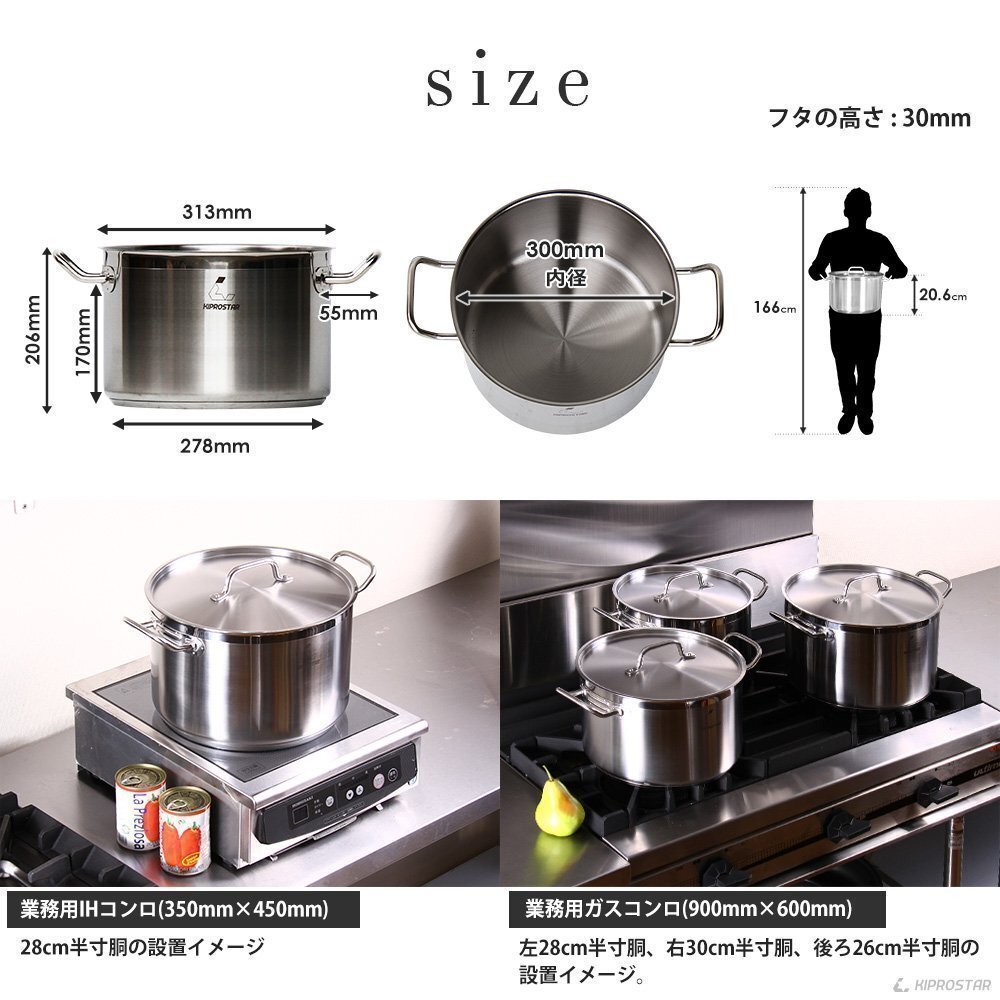 KIPROSTAR業務用ステンレスIH半寸胴鍋(蓋付)30cm |