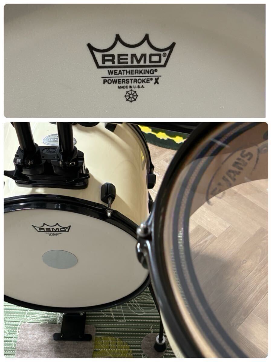 ヘッドはバスドラをREMOにタム&スネアはEVANS EC2に換装してあります。