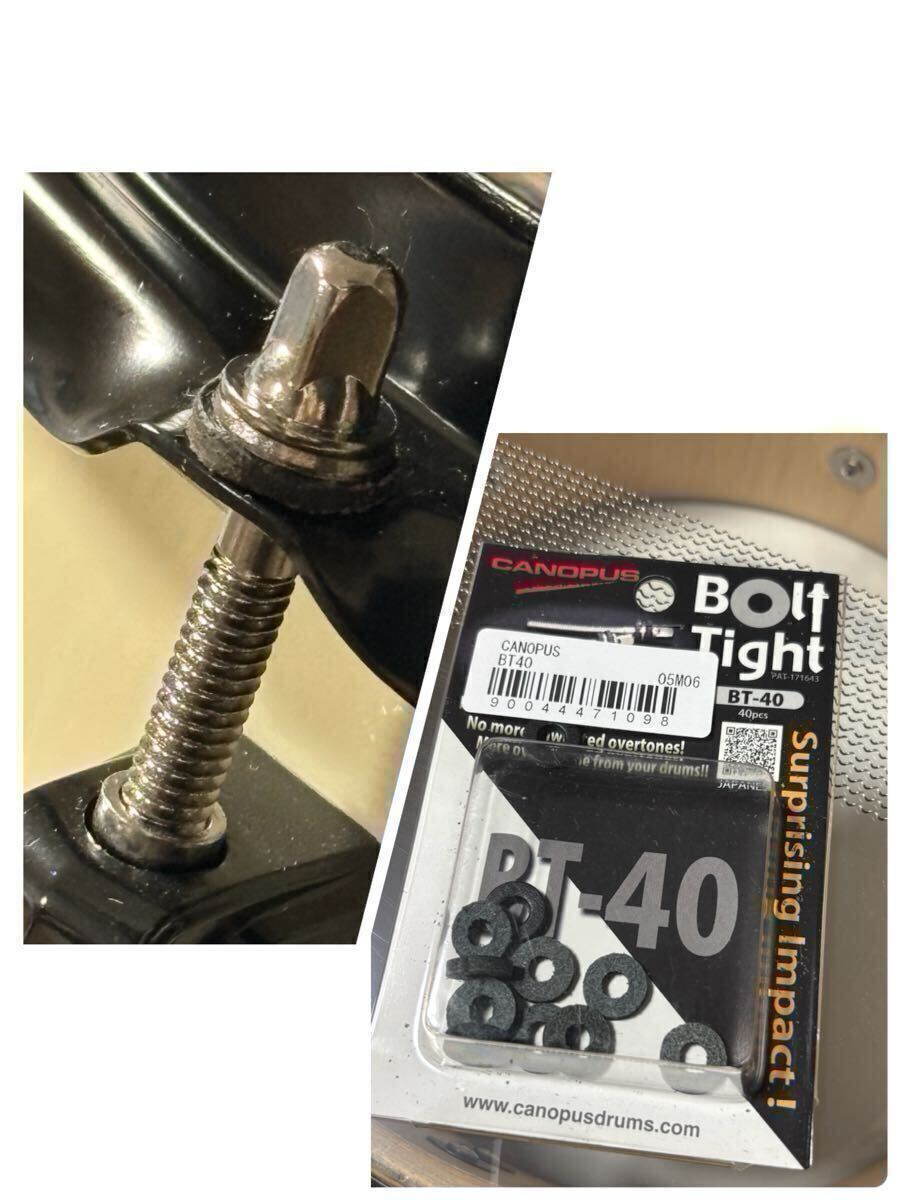 スネアのスナッピーはCANOPUSのヴィンテージに換装。全てのチューニングボルトにCANOPUSのボルトタイトが入っています。
