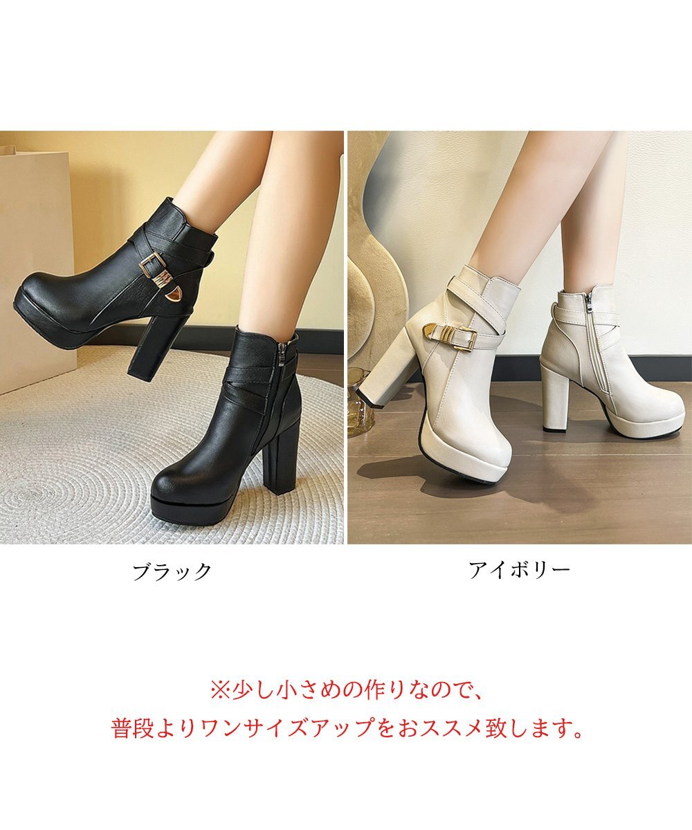 レディース 美脚ブーツ ブーティー 10cm太ヒール 飾りベルト おしゃれ カッコイイ セクシー ストームブーツ