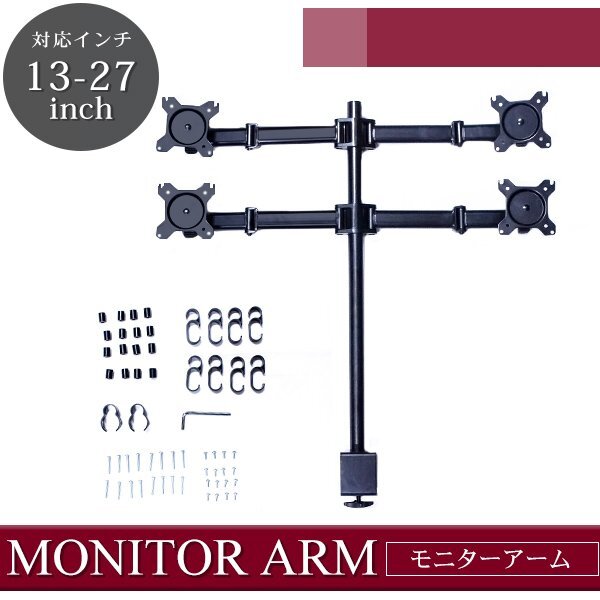オフィス デスク モニターアーム 13インチ~27インチに適用 モニターブラケット 角度調整可能 パソコン 追加モニター ツイン画面