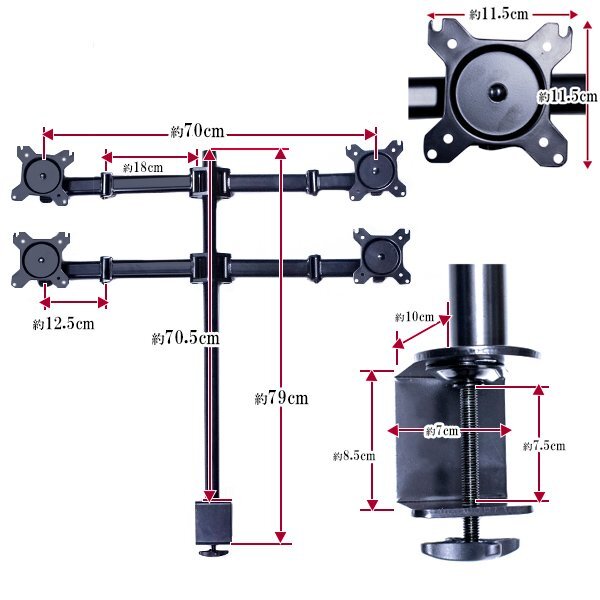 商 品 説 明●モニターアームを使うことで、モニターの台座が不要になるため広々とデスク上を使用できます。