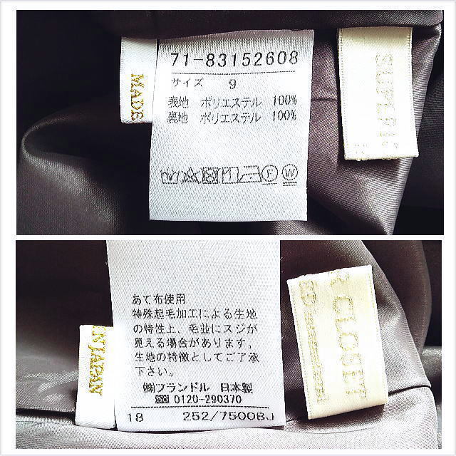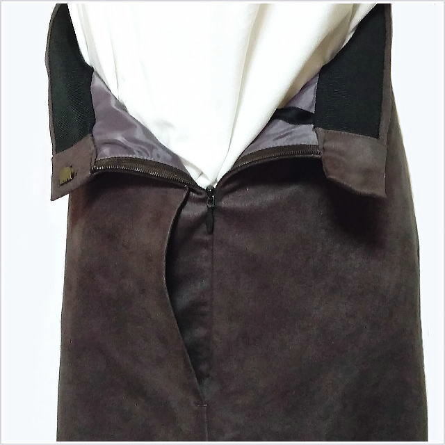 日本製。裏地付き。両サイドにポケット付き。サイドファスナー付き。