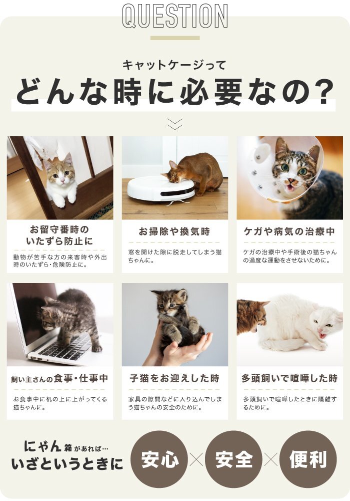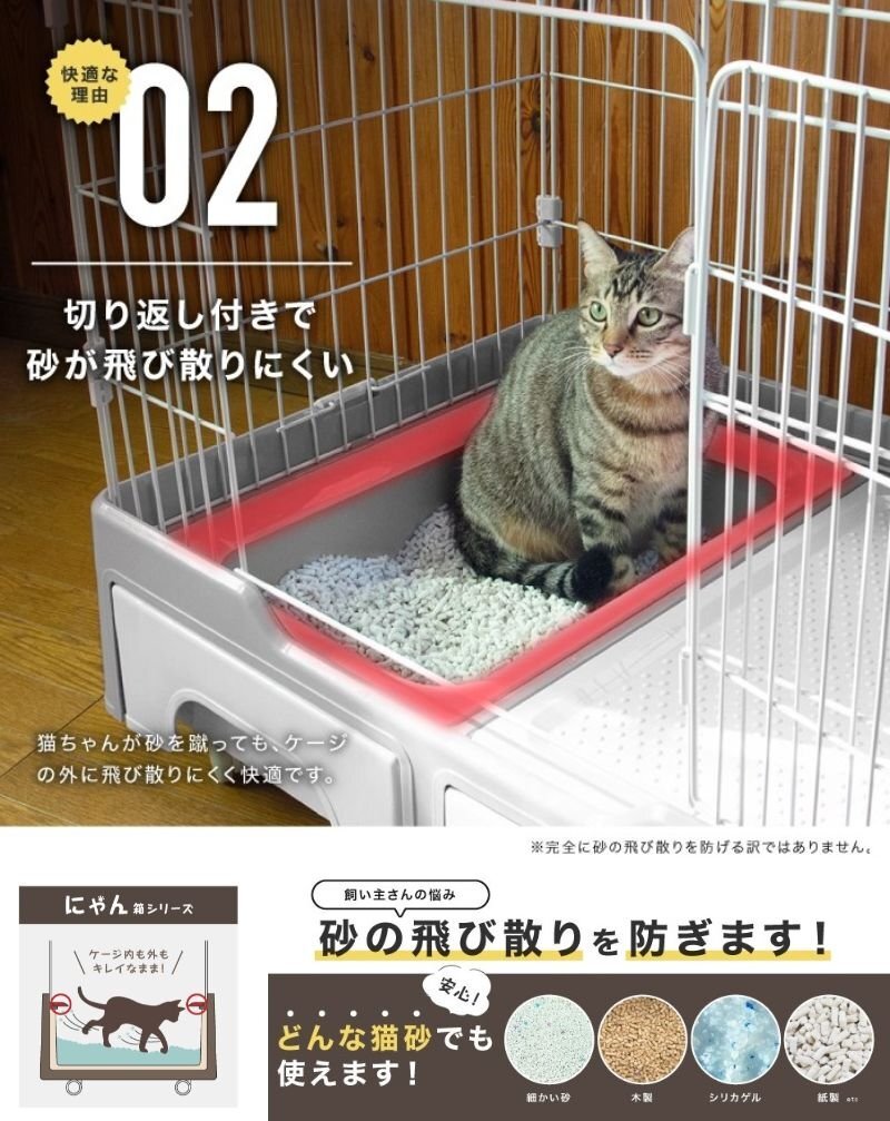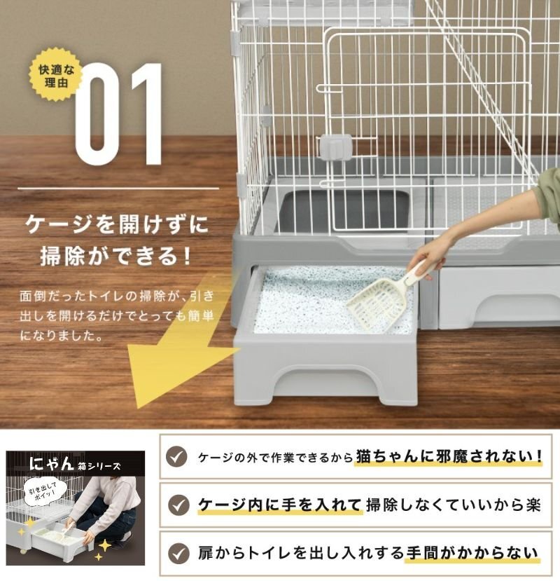 商品説明 | トレイ収納型 キャットケージ 砂が飛び散りにくい切り返しのついたモデル ケージを開けずにトイレの掃除ができる お世話しやすい中央の扉はスライドロックだから片手で簡単開閉 おもちゃや掃除グッズをしまえる収納引き出し付き ■カラー:アイボリー ■サイズ:800×800×560(mm) ■素材:PP、ABS、スチール ■付属品:組み立てパーツ、トイレ用スコップ |