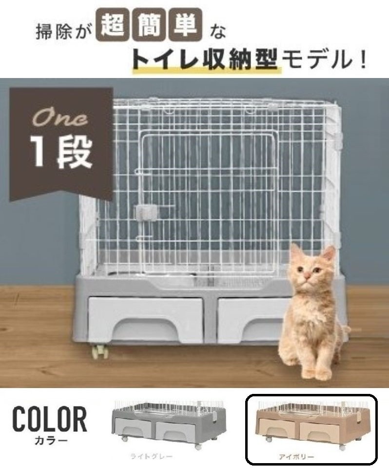 ☆1円~ トイレ一体型 キャットケージ 1段 キャスター付 収納引き出し付き【アイボリー】 |