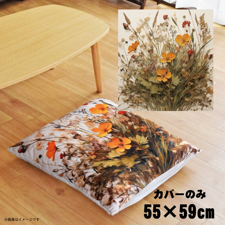 座布団 カバー 55×59cm カバーのみ 単品 北欧 洗える おしゃれ ファスナー付 リビング イラスト 転写プリント CSC-B001 押し花