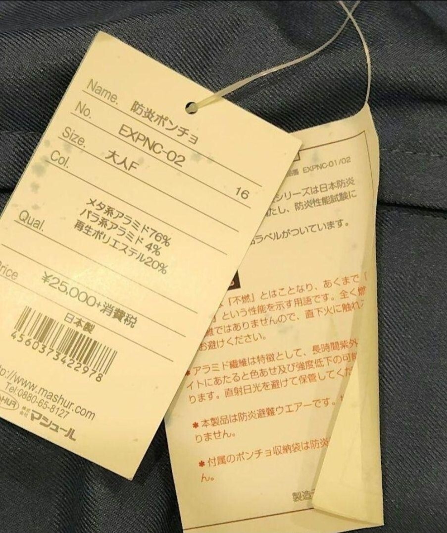 未使用タグ付きの Nomex(ノーメックス)製ポンチョです。