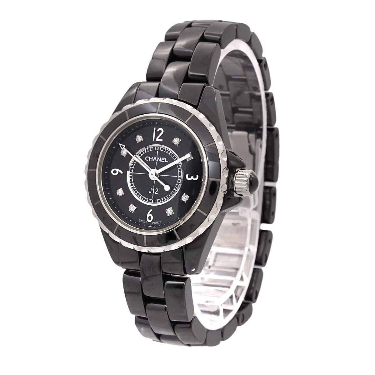 商品概要 | シャネル(CHANEL)から名実ともにシャネルウォッチの代表作となった『J12』でございます☆傷が付きにくい硬質なハイテクセラミックを使用!文字盤の8Pダイヤをセッティングした、高級感溢れるラグジュアリーモデルです♪ |