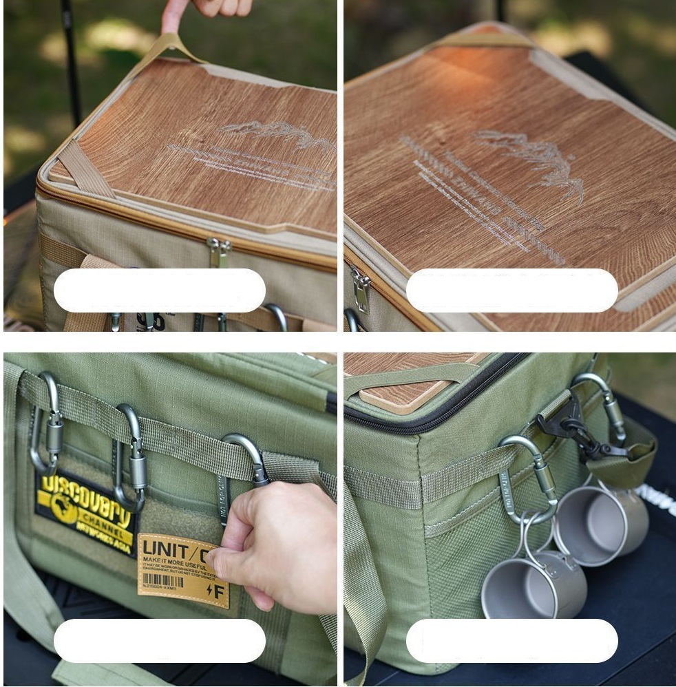 天板付き36L大セイズ キャンプ 超高品質多機能收納ケース自立式 大容量収納バッグ 厚くして衝突を防ぐ アウトドア 登山 41×30×28cm 黑