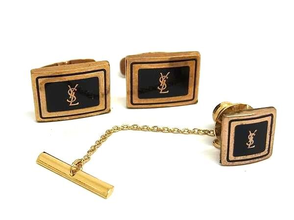 YVESSAINTLAURENT イヴサンローラン カフスボタン カフリンクス ネクタイピン アクセサリー 2点セット メンズ ゴールド系 DI2330