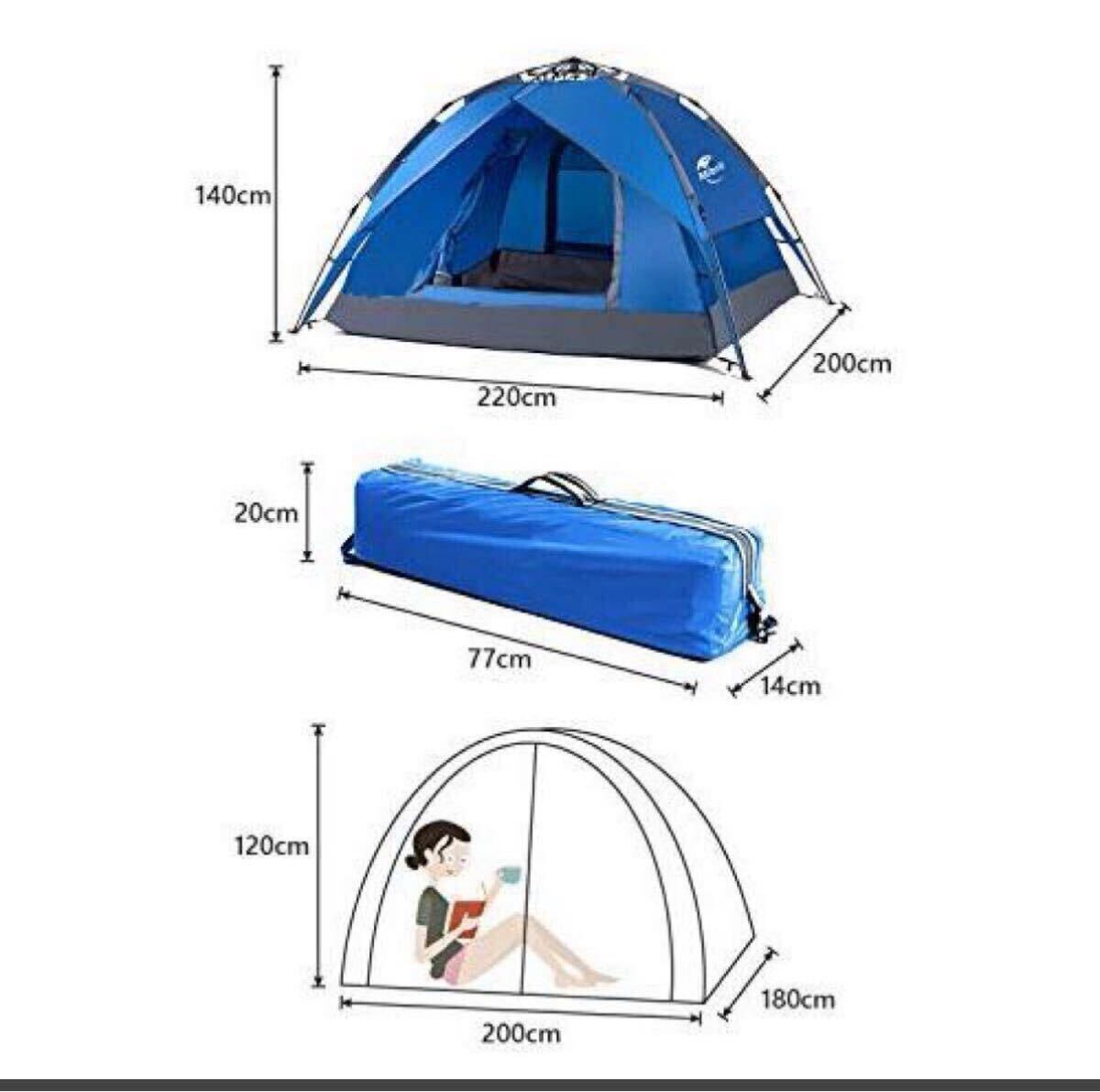 【コンパクト&軽量】サイズ:幅220x奥行200x高さ140cm(3~4人用)、コンパクトだったのに、テント内はゆったりして快適です。