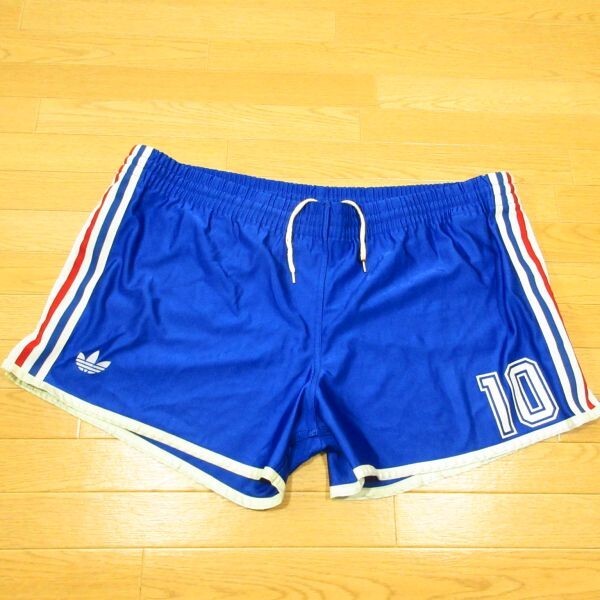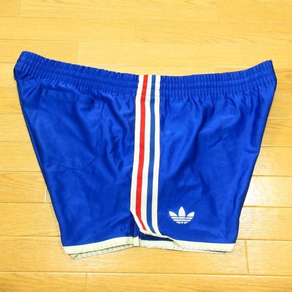 ◎希少 80s!adidas アディダス オールド TAD-57 光沢 ショートパンツ ゲームパンツ サッカー ジャージ ヴィンテージ メンズ 青 XL◆PA4056