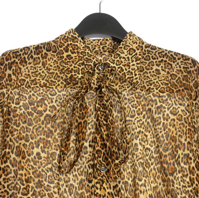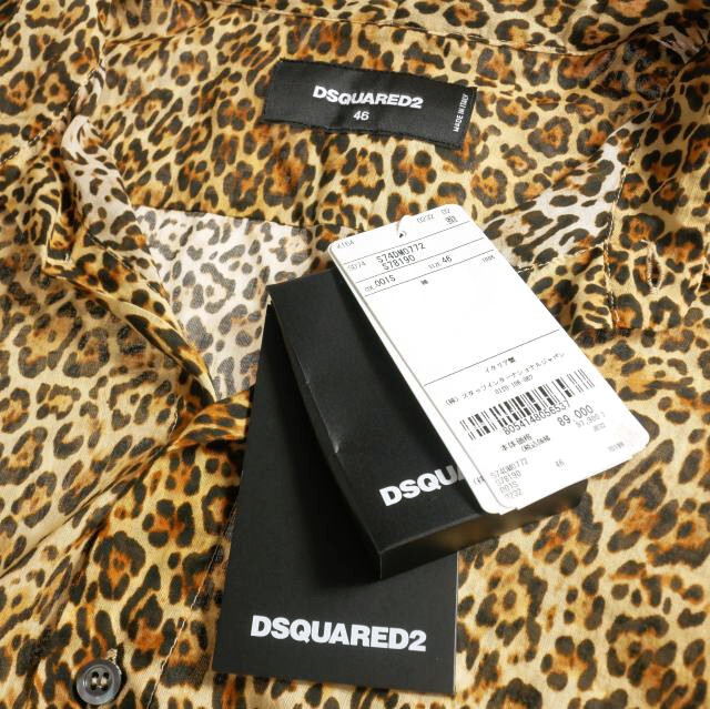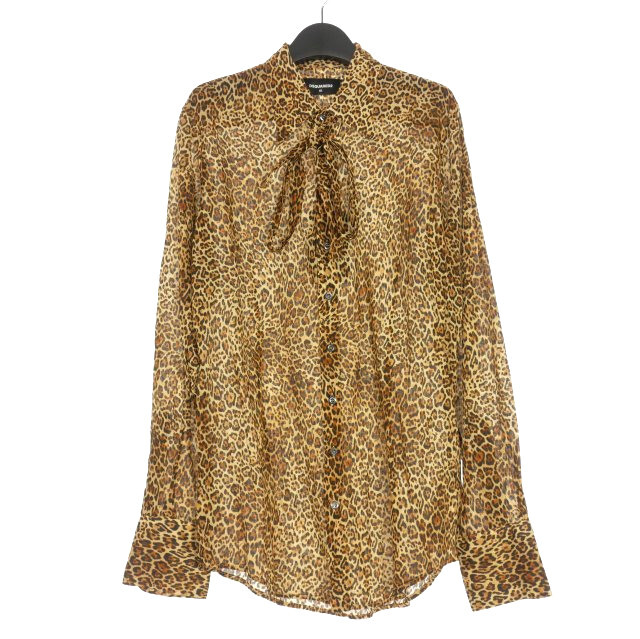 未使用品 ディースクエアード DSQUARED2 23AW Relax Dan 70's Collor リボンタイ レオパード柄シャツ 長袖 46 ベージュ S74DM0772 国内正規 メンズ