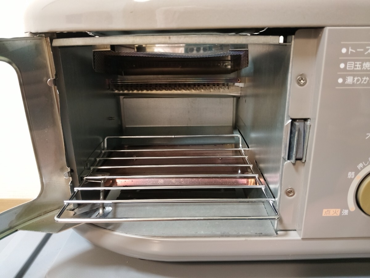 ■付属品(画像9)は、プレート、ガラス蓋、五徳、ポットホルダー、パンくず用トレイ、専用タイマー(経年による変色あり)です。