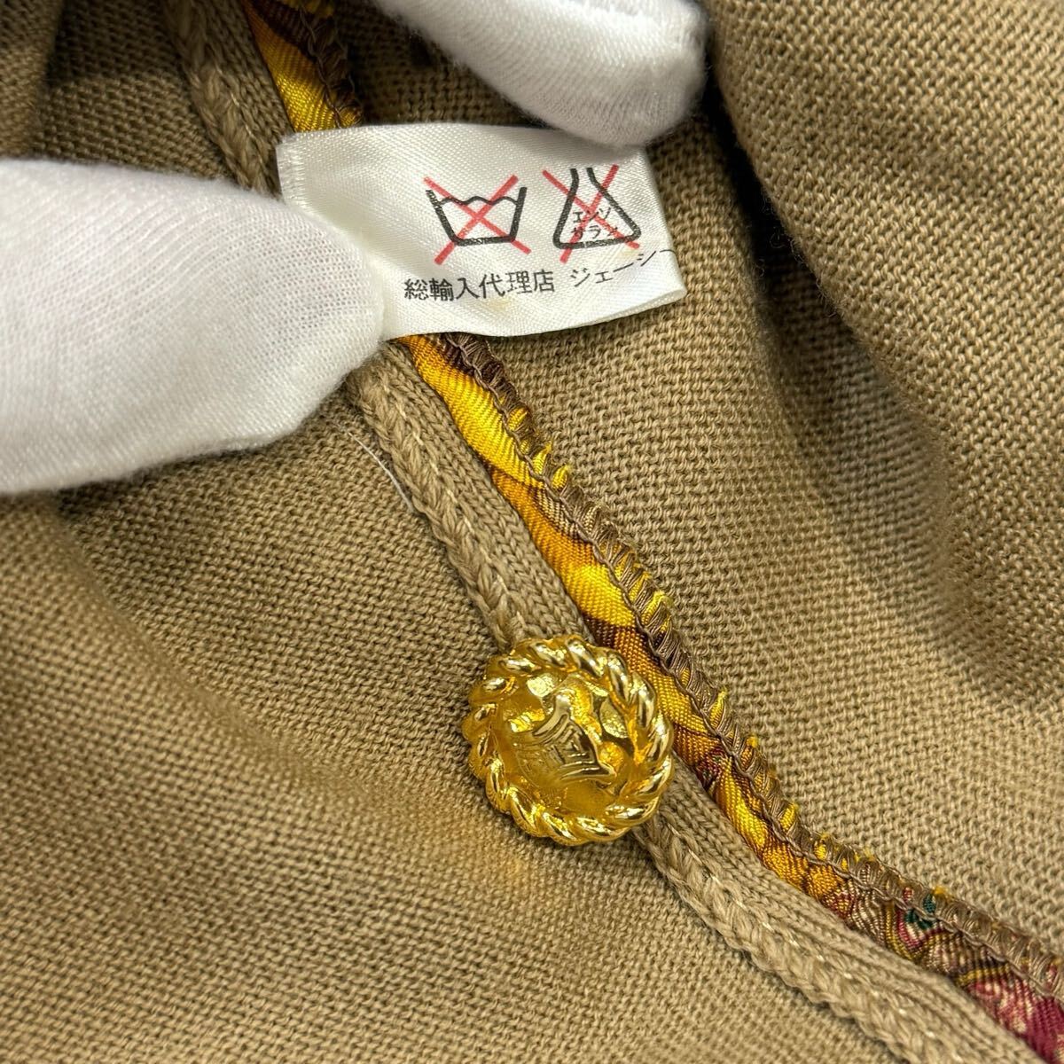 Vintage CELINEより、パリのエレガンスと大胆な個性が融合した稀有なカーディガン。これは、かつてのセリーヌが追求した、知的でありながらも遊び心と力強さを秘めた女性像を象徴する一枚です。