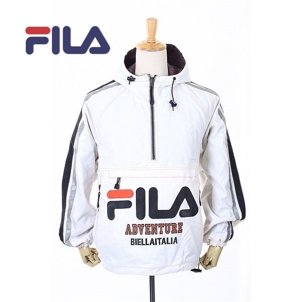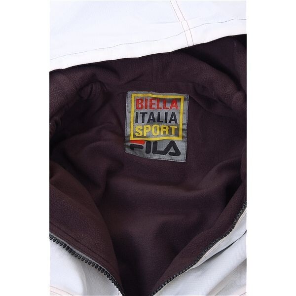 A5356/80s 90s 美品 秋冬 FILA フィラ BIELLA ITALIA アノラック プリント カンガルー リバーシブル パーカー ブルゾン L 白 灰色/メンズ