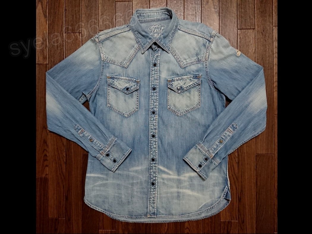 ○2014年発売品。 オリジナルの生地を使用したデニムシャツ。 シンプルな表情の中に細かく計算された、加工、パターンが最大の特徴。 肌寒い季節にはインナーとして、暖かい季節にはカットソーの上からサラッと羽織れるよう配慮されています。 スナップボタンは、ブラックパールボタンを採用し、全体的に引き締まった高級感のある雰囲気を放っています。 ◎強い色落ち、破れ、染みなど目立つダメージはありません。 襟回り、袖口に黄ばみもありません。 二重梱包で発送いたします(ビニール等 & 紙袋 or ダンボール箱) ◎良品。 目立つダメージ無く、コンディションは比較的良好な部類ですが、古着・加工にご理解の無い方、多少の使用感等極端に状態を気になさる方は入札をご遠慮ください。