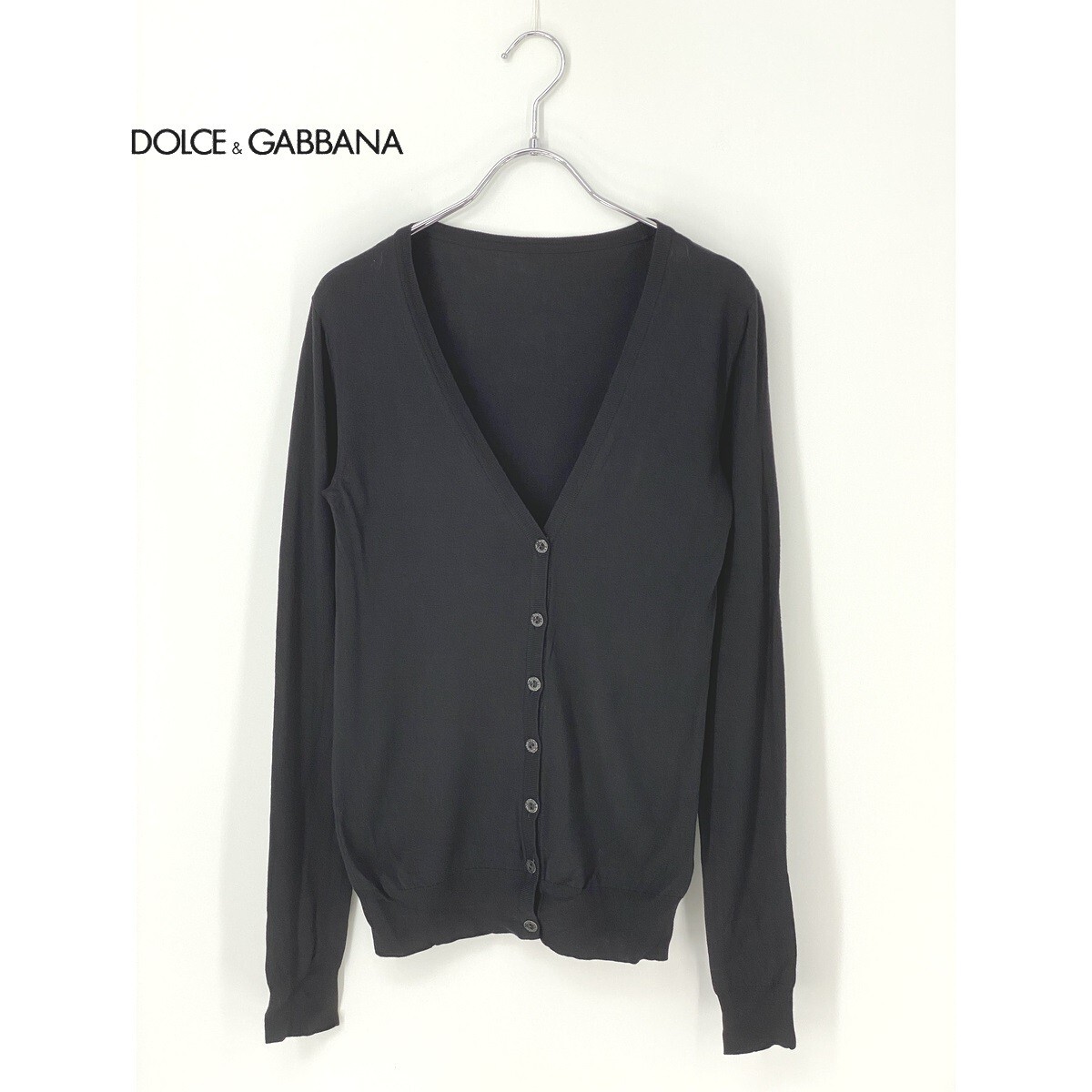 A7851/春夏 DOLCE&GABBANA ドルチェ&ガッバーナ ウール Vネック 長袖 ニット リブ カーディガン カットソー 38 M程 黒/レディース セーター