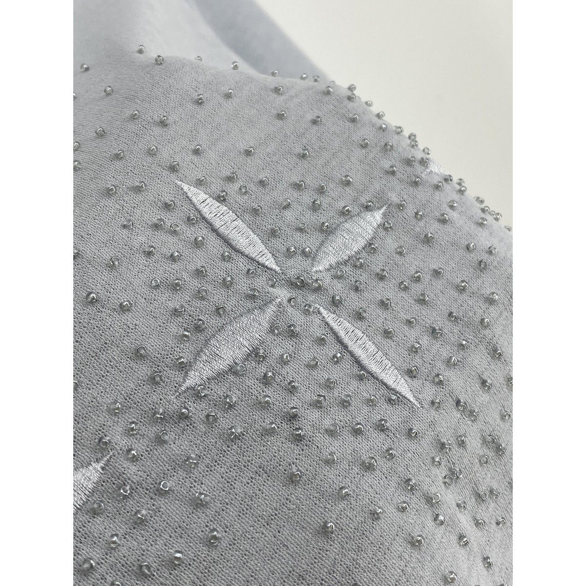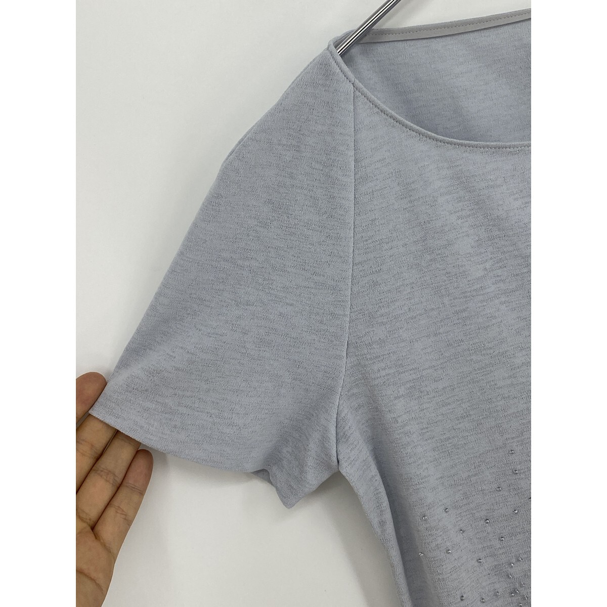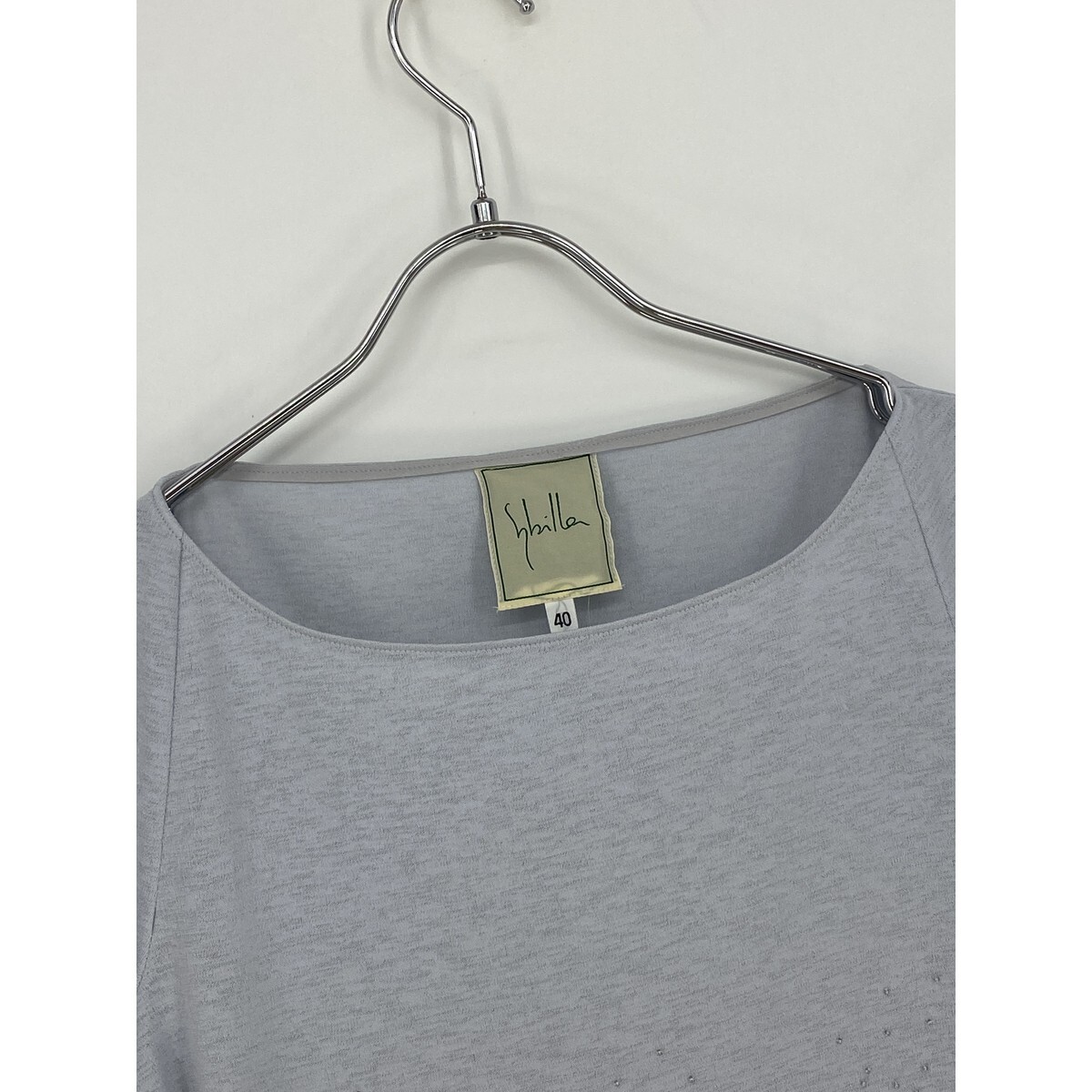 B0797/極美品 Sybilla シビラ クルーネック ビジュー装飾 刺繍 ラグラン 半袖 Tシャツ カットソー 40 M程 水色 レディース ブラウス